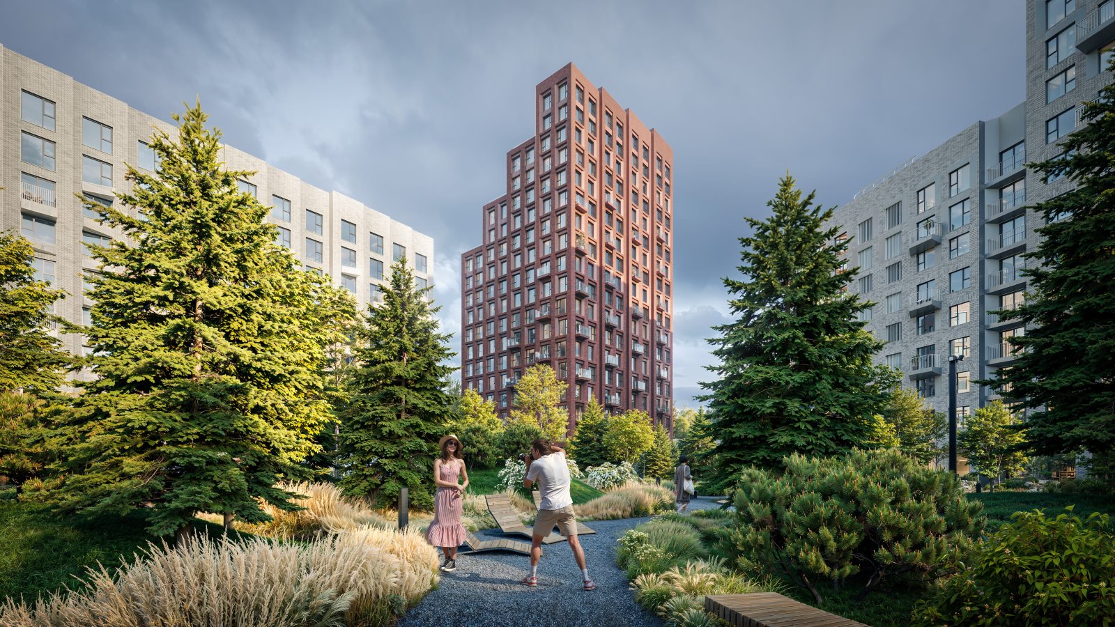 Двор четвертого квартала является продолжением архитектурной концепции проекта — это зеленые креативные пространства с футуристическими арт-объектами, где дети и взрослые могут найти занятие по интересам. В проекте будет реализован «двор без машин», предусмотрен трехуровневый подземный паркинг с кладовыми.