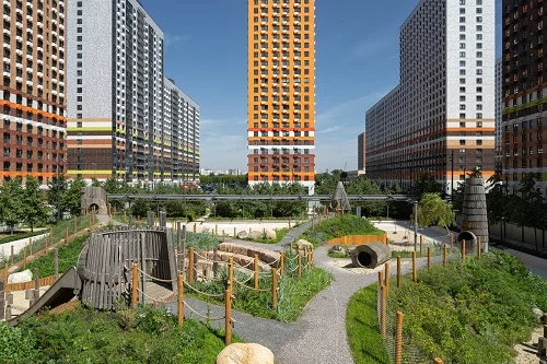 На территории квартала уже открыт детский сад. Во дворах - благоустроенные зеленые парки с местами для отдыха, детскими и спортивными площадками. Для владельцев автомобилей предусмотрены подземные парковки. Недалеко от дома находится музей Морского космического флота и Академгородок Митино, который можно посетить с детьми на выходных.
