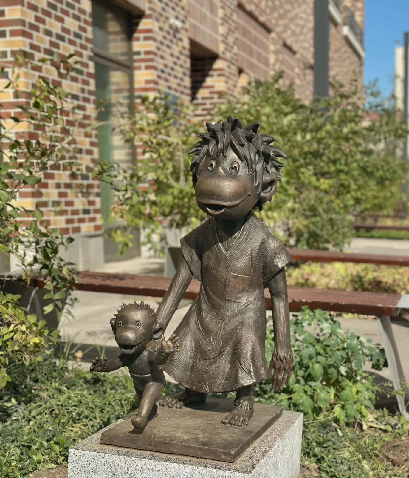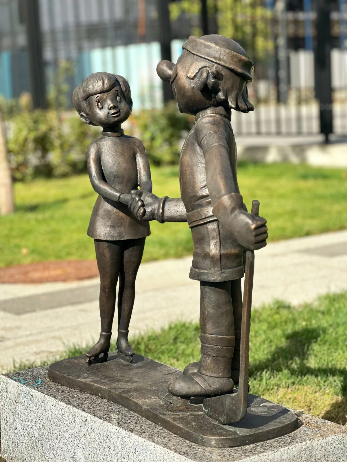 Высота фигур позволяет даже маленьким детям рассматривать детали скульптур и позировать на фото рядом с кумирами. Скульптуры с персонажами были изготовлены из бронзы, каждая высотой 60-120 см.