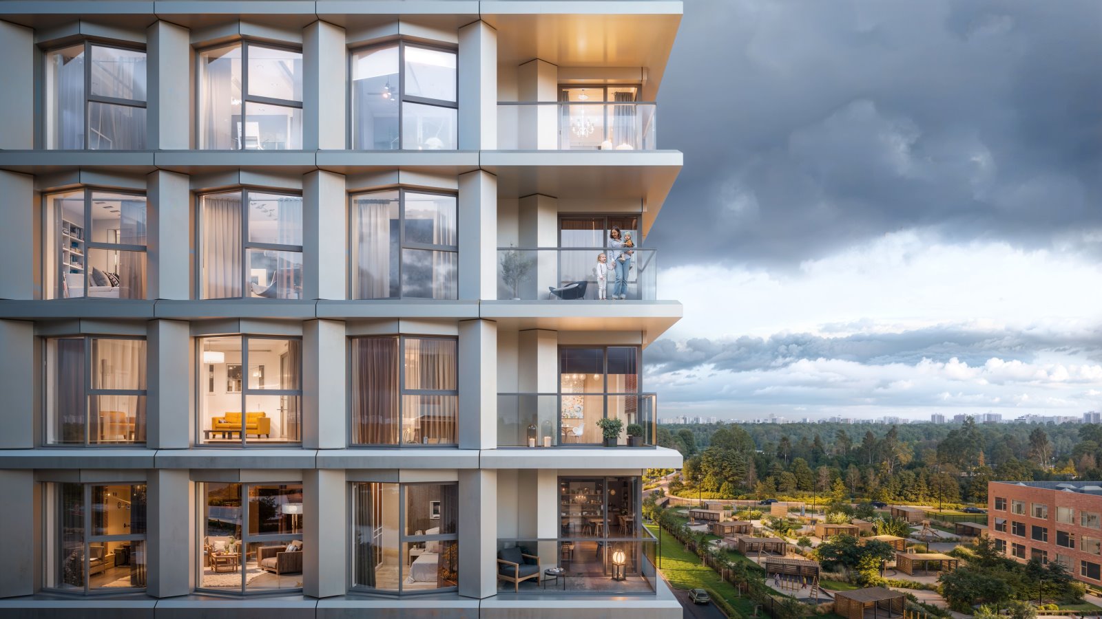 Первая секция, представленная 24-этажным зданием, практически полностью завершена, активно идут работы по внутренней отделке помещений. Изначально в компании рассматривалась возможность сдать секцию в эксплуатацию в конце этого года, однако в связи с холодным температурным режимом было принято решение перенести сдачу на первую половину следующего года. Полностью комплекс будет достроен к концу 2016 года.