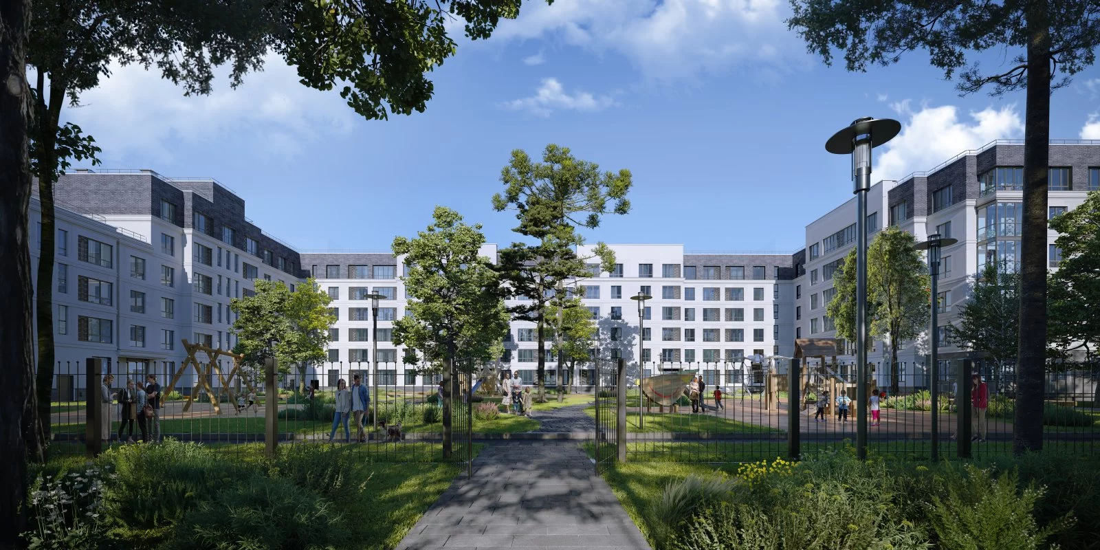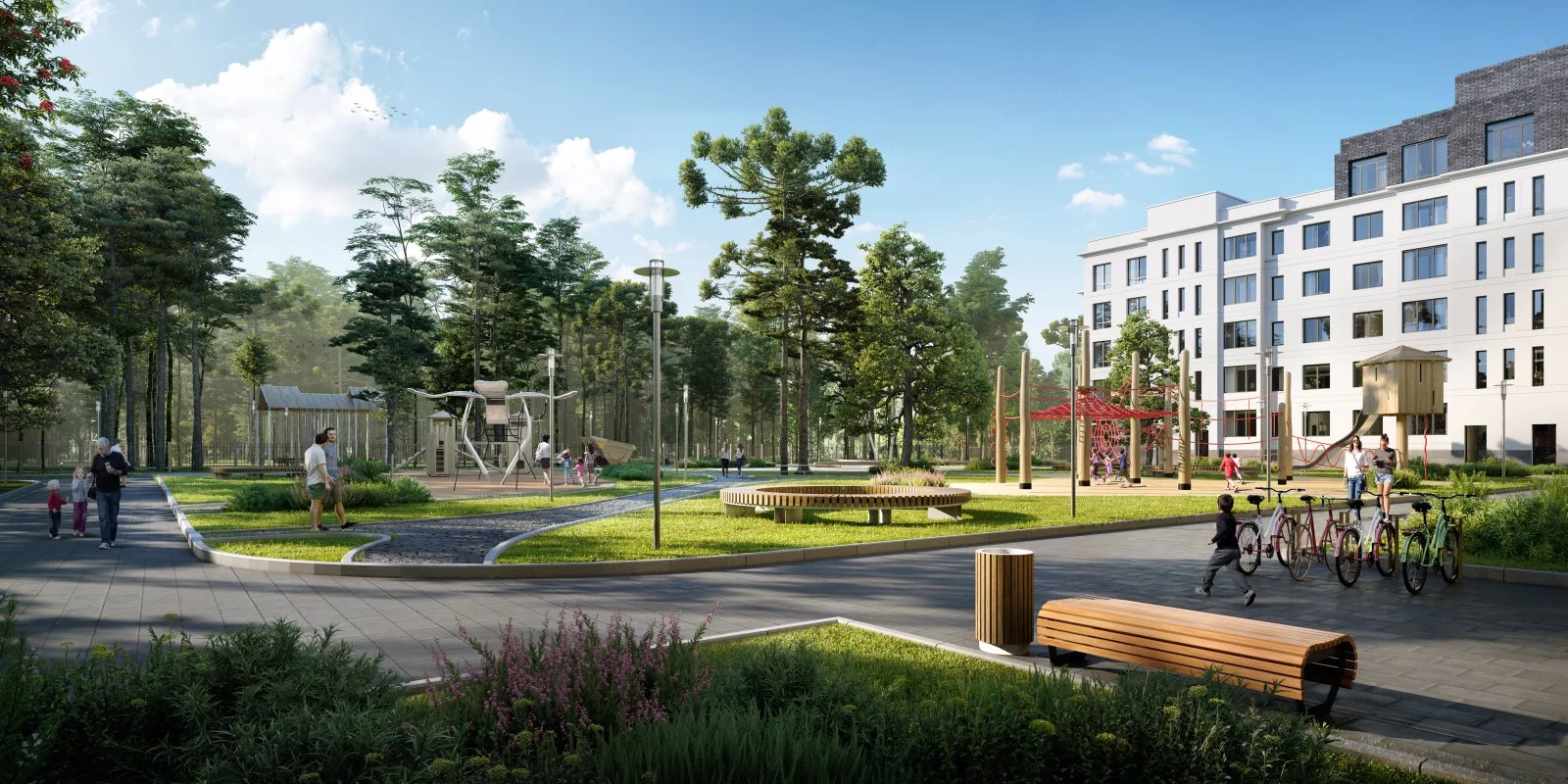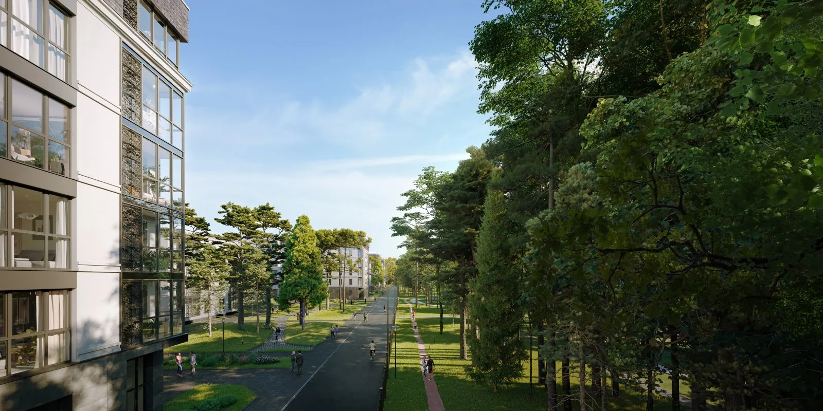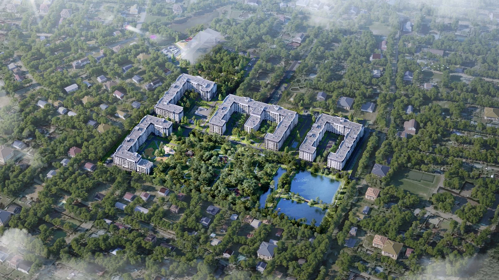 4 здания миниполиса комфортно разместятся на границе парка Опалиха-Алексеевское. Застройщики обещают сохранить максимальное количество деревьев в этой зоне. Помимо этого здесь будут пруды видом которых смогут наслаждаться жители. Миниполис будет располагаться среди частных коттеджей в окружении лесных зон.