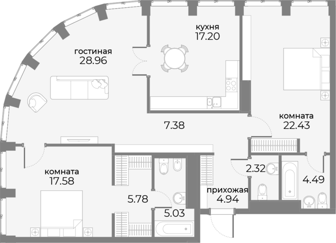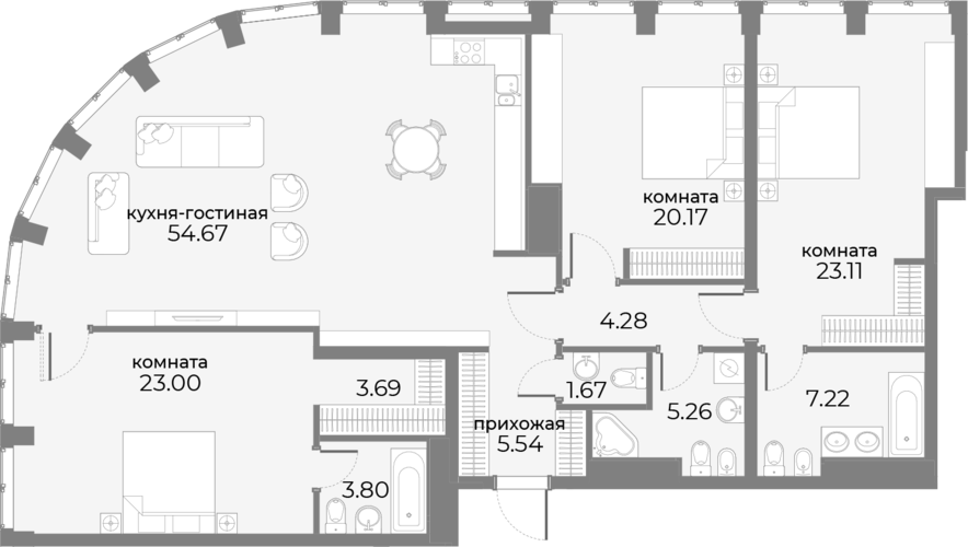 Трехкомнатные квартиры в ЖК «SkyView»(СкайВью)