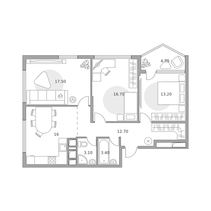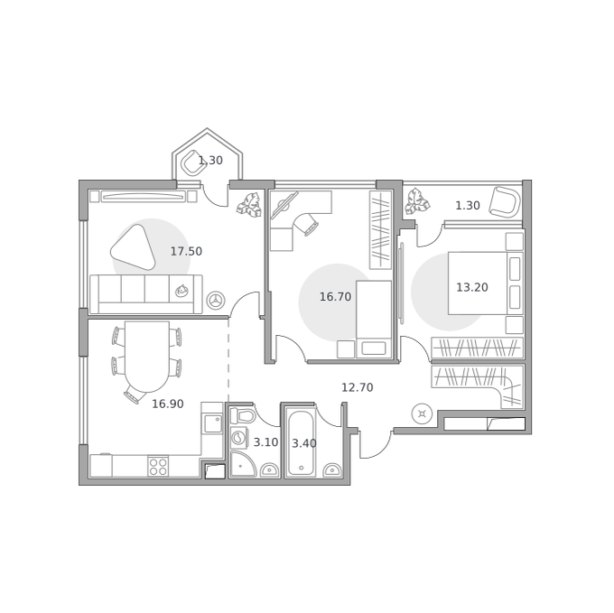 Квартиры в ЖК предлагаются различных планировок. Почти во всех помещениях предусмотрена возможность свободной планировки, которая позволит жителям комплекса организовать индивидуальное пространство под себя. В комплексе доступны как просторные трехкомнатные квартиры для больших семей, так и квартиры-студии. Площади квартир варьируются от 23 кв. м до 70 кв. м.