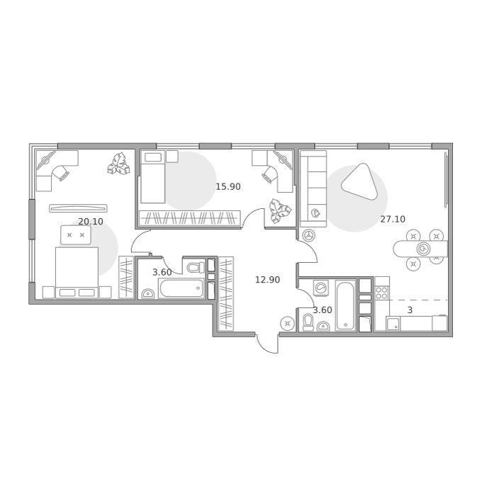 Трехкомнатные квартиры в ЖК Бригантина