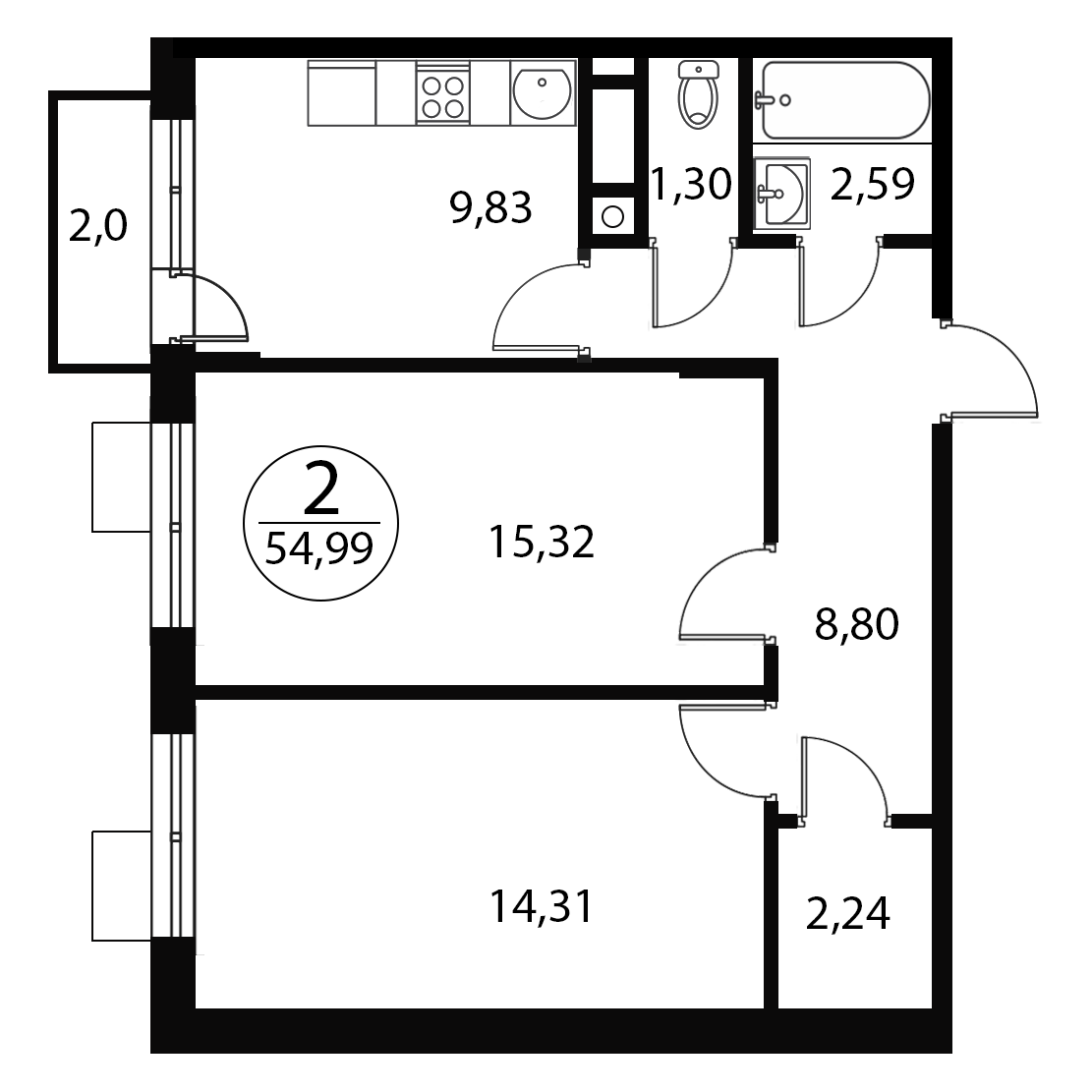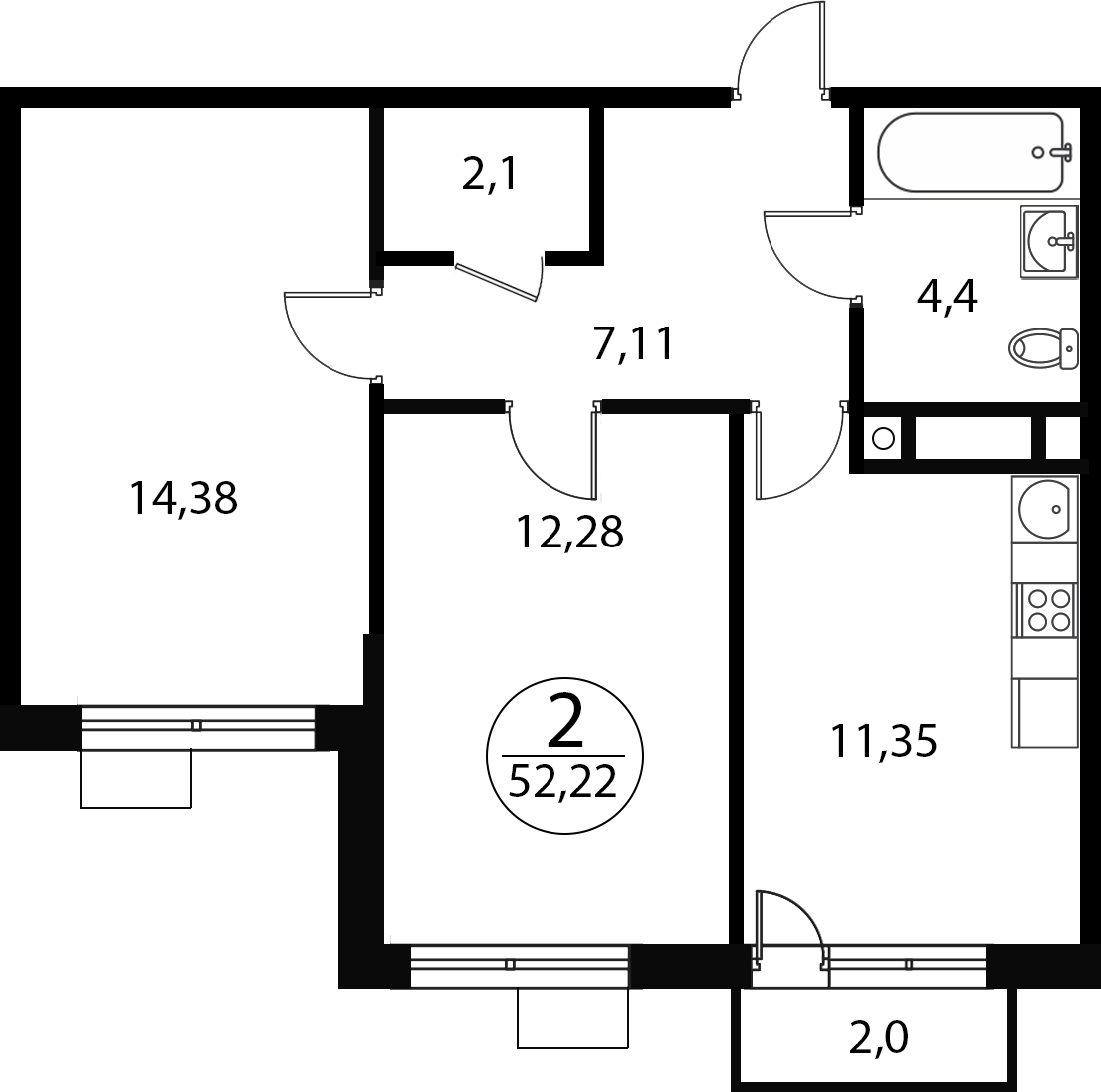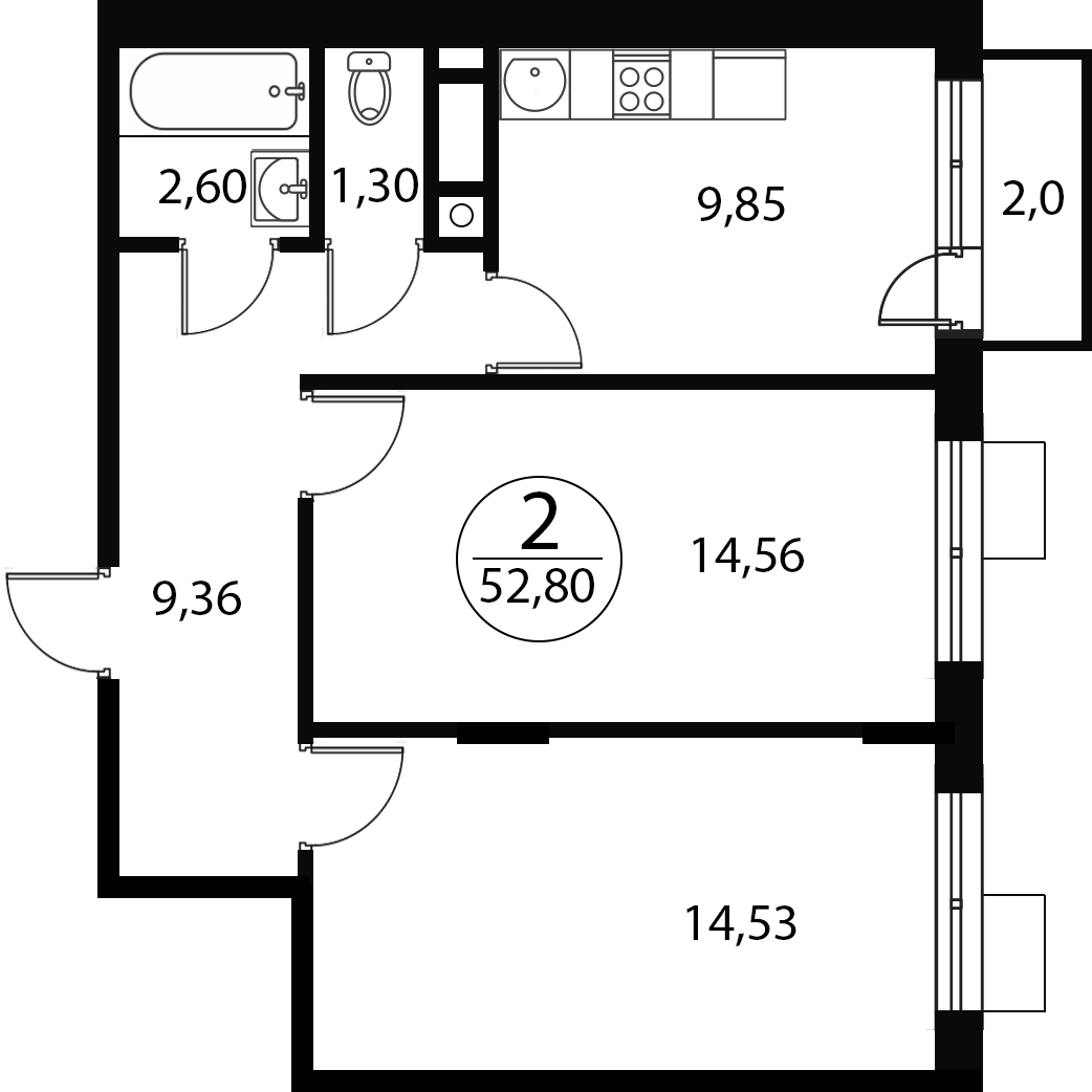 Двухкомнатные квартиры в ЖК Катуар