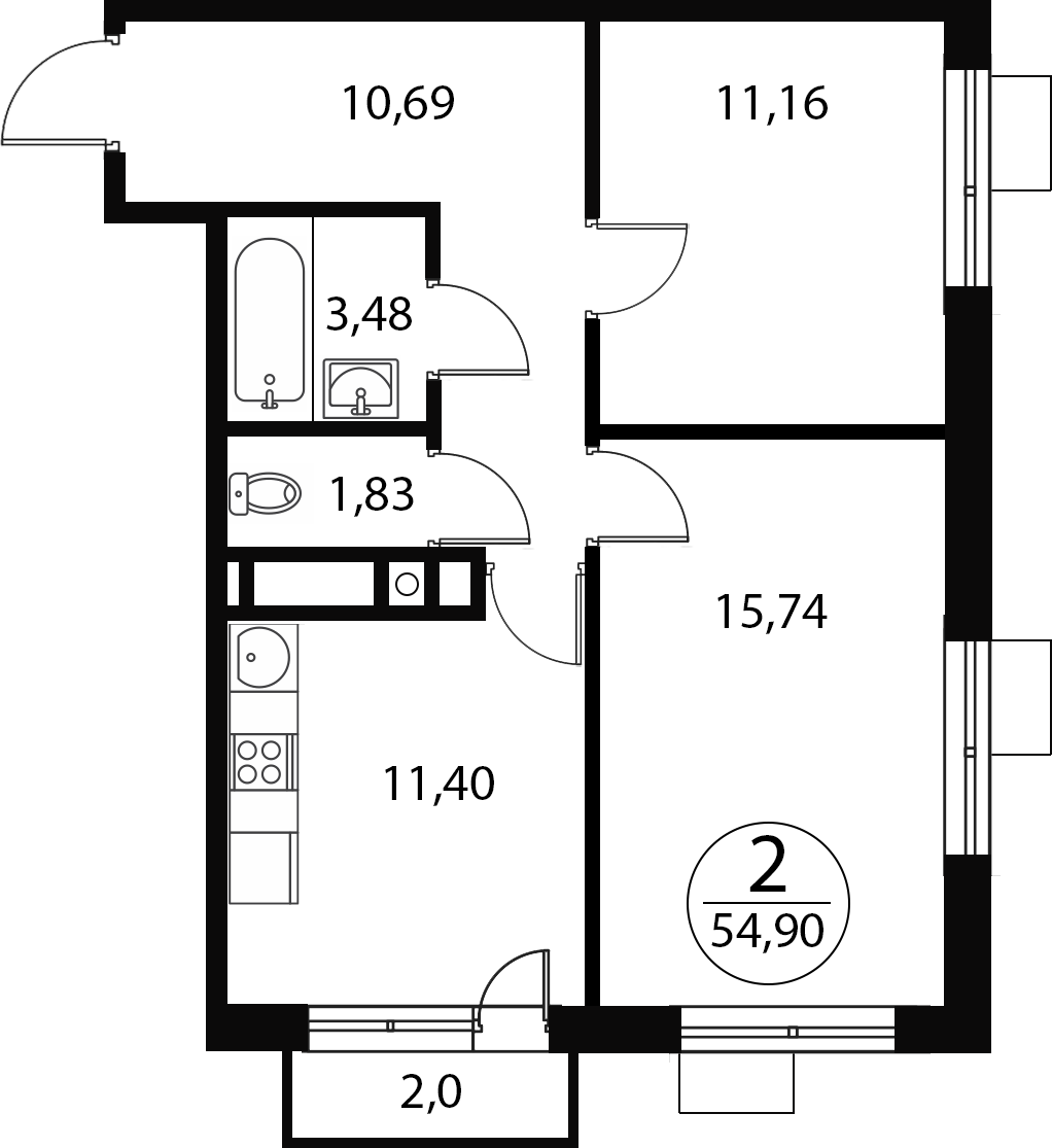 В комплексе предлагаются квартиры любого плана: комфортные 1-комнатные площадью от 36 до 46 кв.м, уютные 2-комнатные от 50 до 62 кв.м. и просторные «трёшки» в 78 кв.м. Квартиры имеют просторный санузел, в некоторых лотах присутствует гардеробная комната и кухня с увеличенной площадью, что является большим плюсом при выборе жилья. В жилом комплексе все квартиры с продуманными и функциональными планировками повышенной площади, что дает больше комфорта и места для жизни.