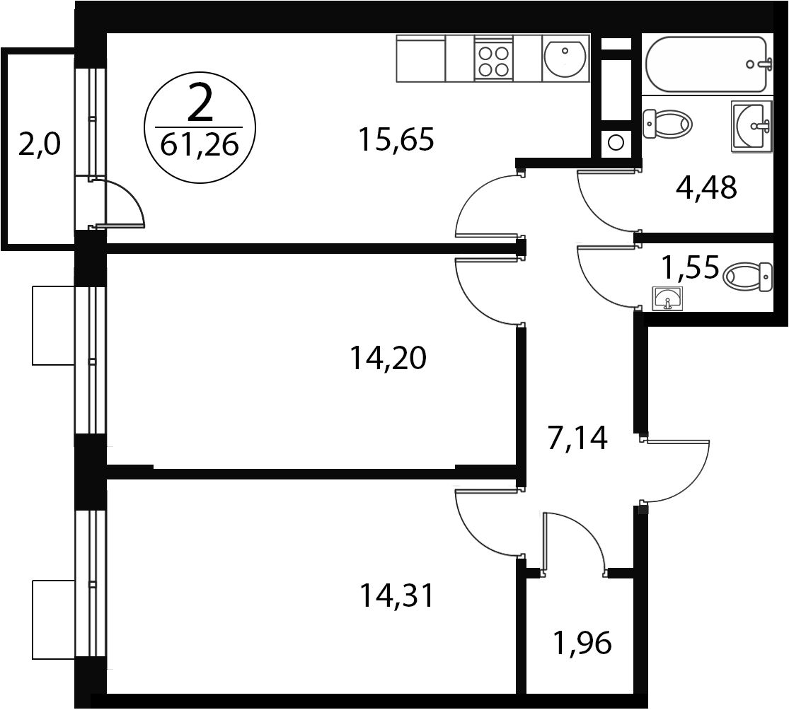 В комплексе предлагаются квартиры любого плана: комфортные 1-комнатные площадью от 36 до 46 кв.м, уютные 2-комнатные от 50 до 62 кв.м. и просторные «трёшки» в 78 кв.м. Квартиры имеют просторный санузел, в некоторых лотах присутствует гардеробная комната и кухня с увеличенной площадью, что является большим плюсом при выборе жилья. В жилом комплексе все квартиры с продуманными и функциональными планировками повышенной площади, что дает больше комфорта и места для жизни.