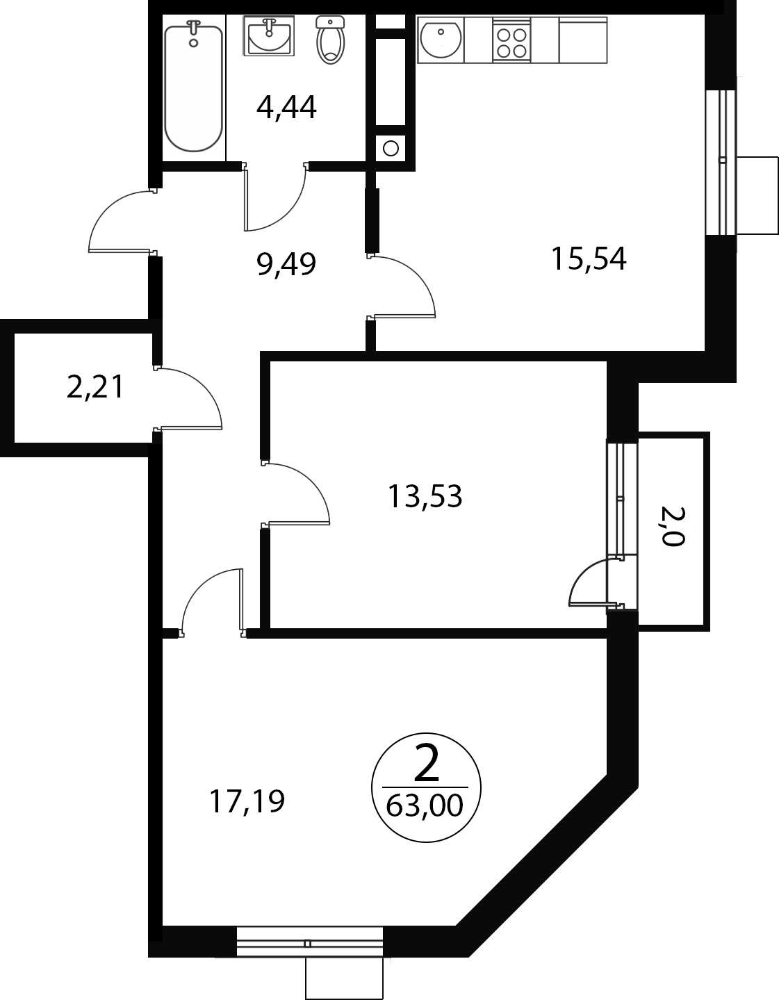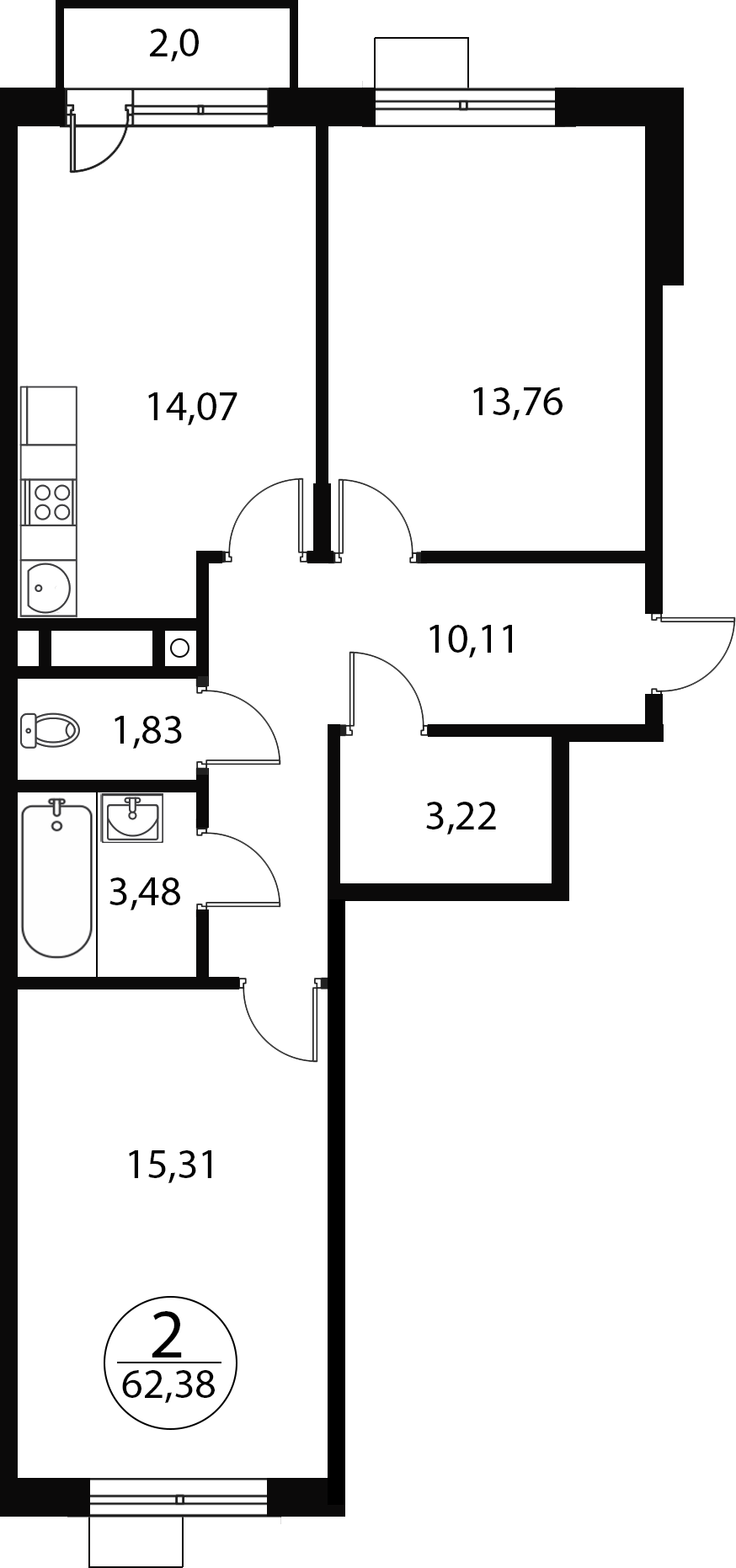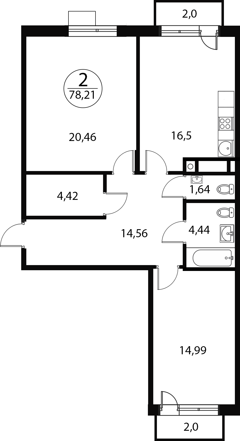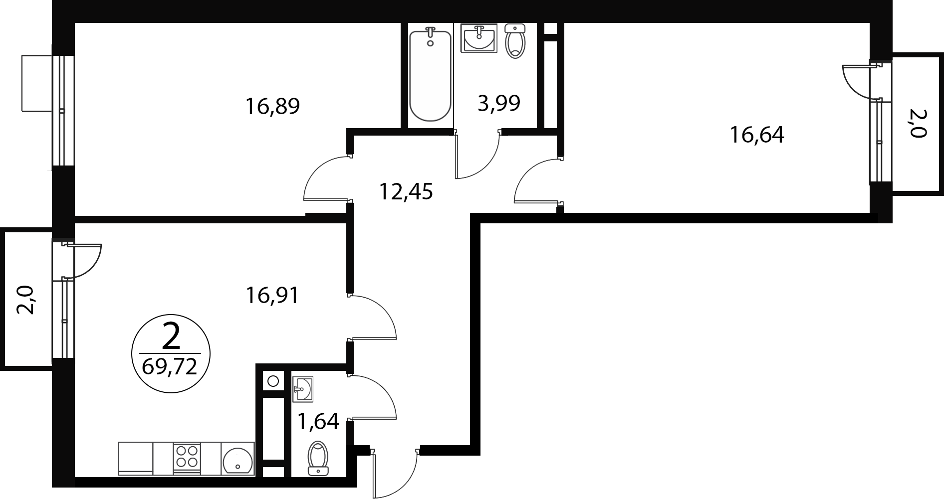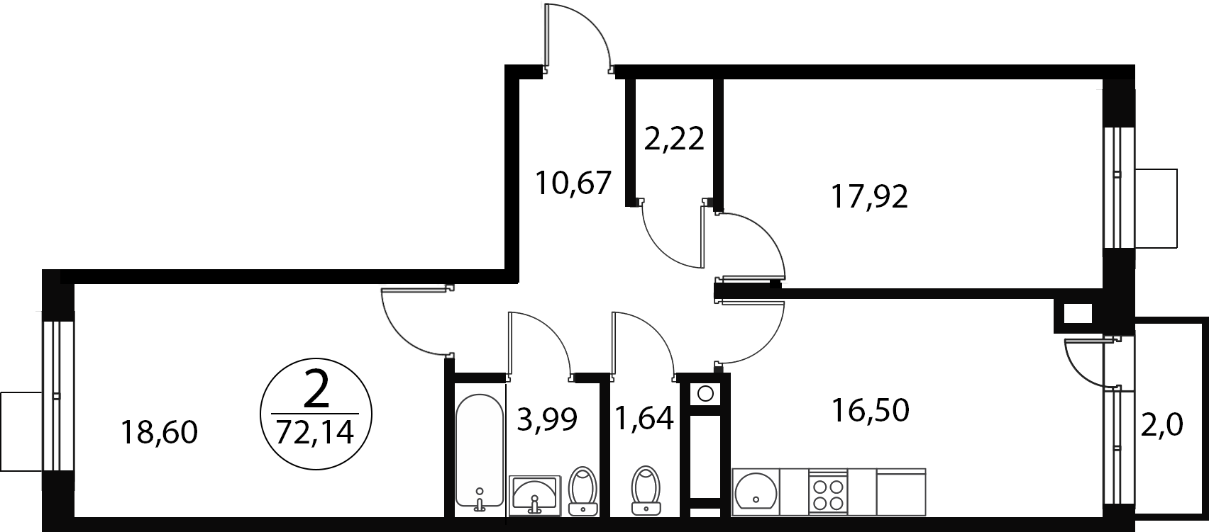 В комплексе предлагаются квартиры любого плана: комфортные 1-комнатные площадью от 36 до 46 кв.м, уютные 2-комнатные от 50 до 62 кв.м. и просторные «трёшки» в 78 кв.м. Квартиры имеют просторный санузел, в некоторых лотах присутствует гардеробная комната и кухня с увеличенной площадью, что является большим плюсом при выборе жилья. В жилом комплексе все квартиры с продуманными и функциональными планировками повышенной площади, что дает больше комфорта и места для жизни.