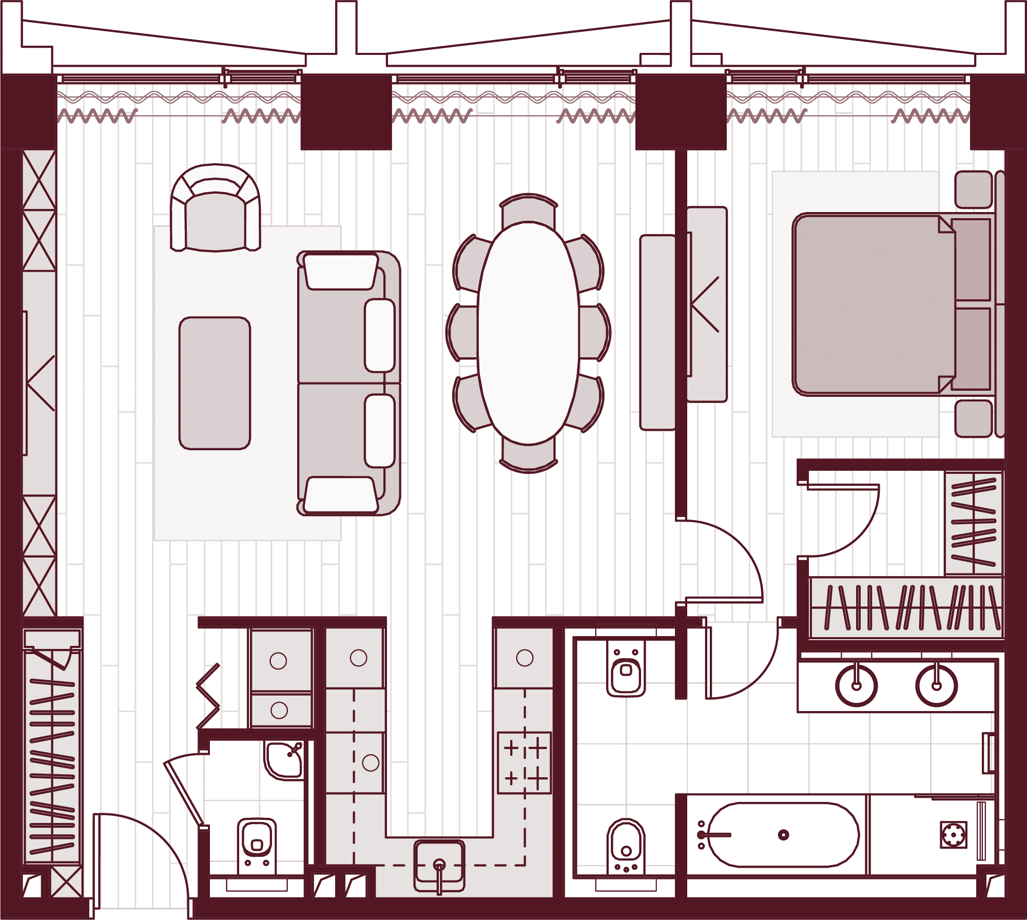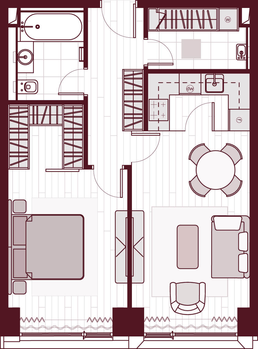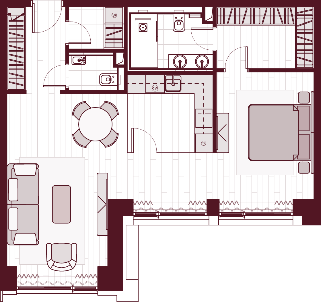 Более 80 вариантов планировочных решений от однокомнатных квартир до двухуровневых дуплексов и пентхаусов площадью от 40 до 398 м2. Панорамные окна, высокие потолки, мастер-спальни, балконы и террасы создают особенный комфорт и уют.