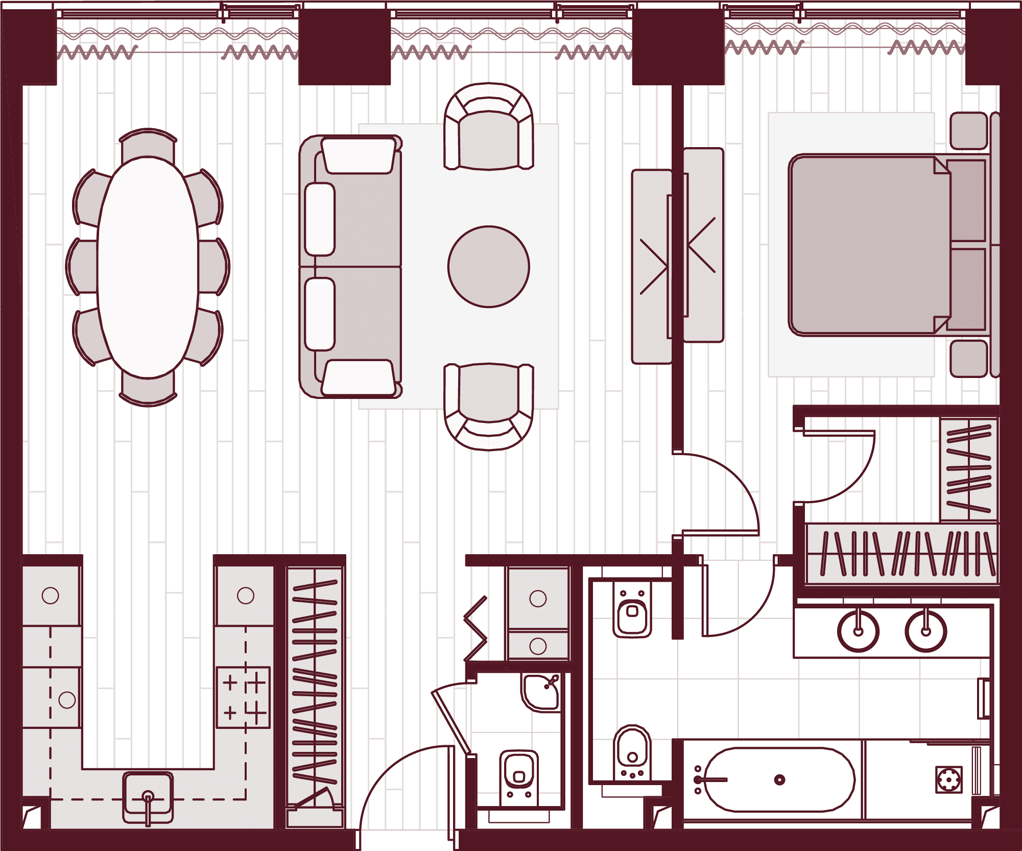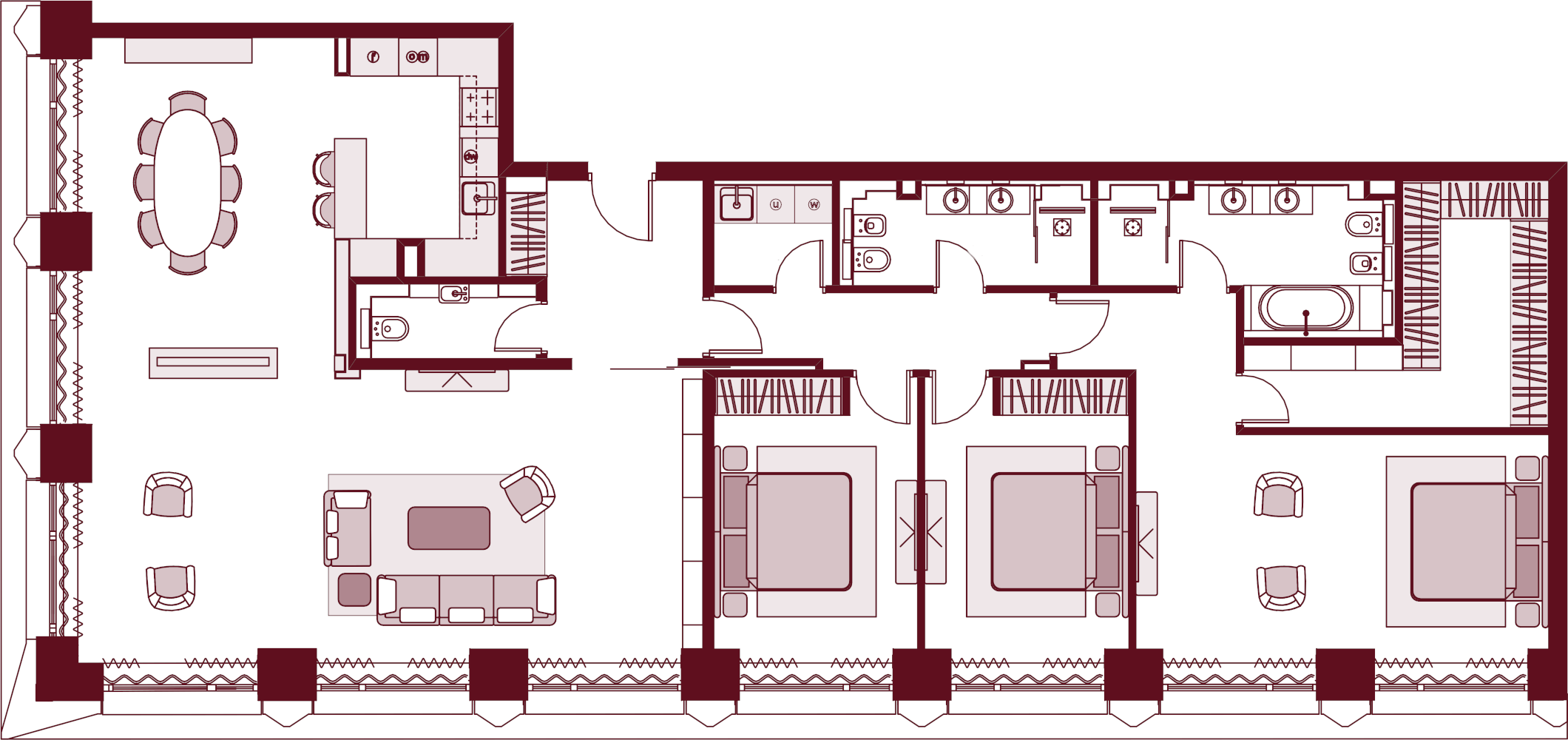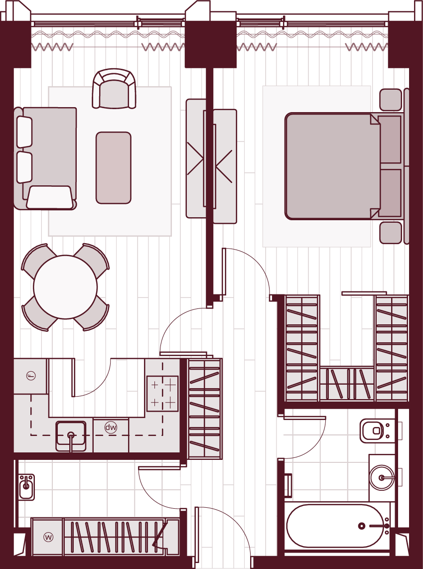 Более 80 вариантов планировочных решений от однокомнатных квартир до двухуровневых дуплексов и пентхаусов площадью от 40 до 398 м2. Панорамные окна, высокие потолки, мастер-спальни, балконы и террасы создают особенный комфорт и уют.