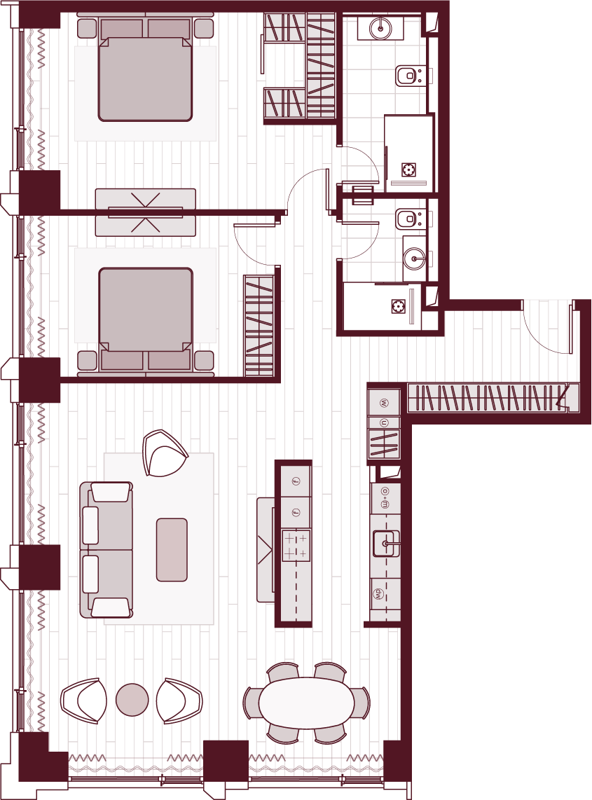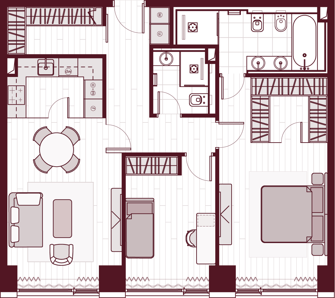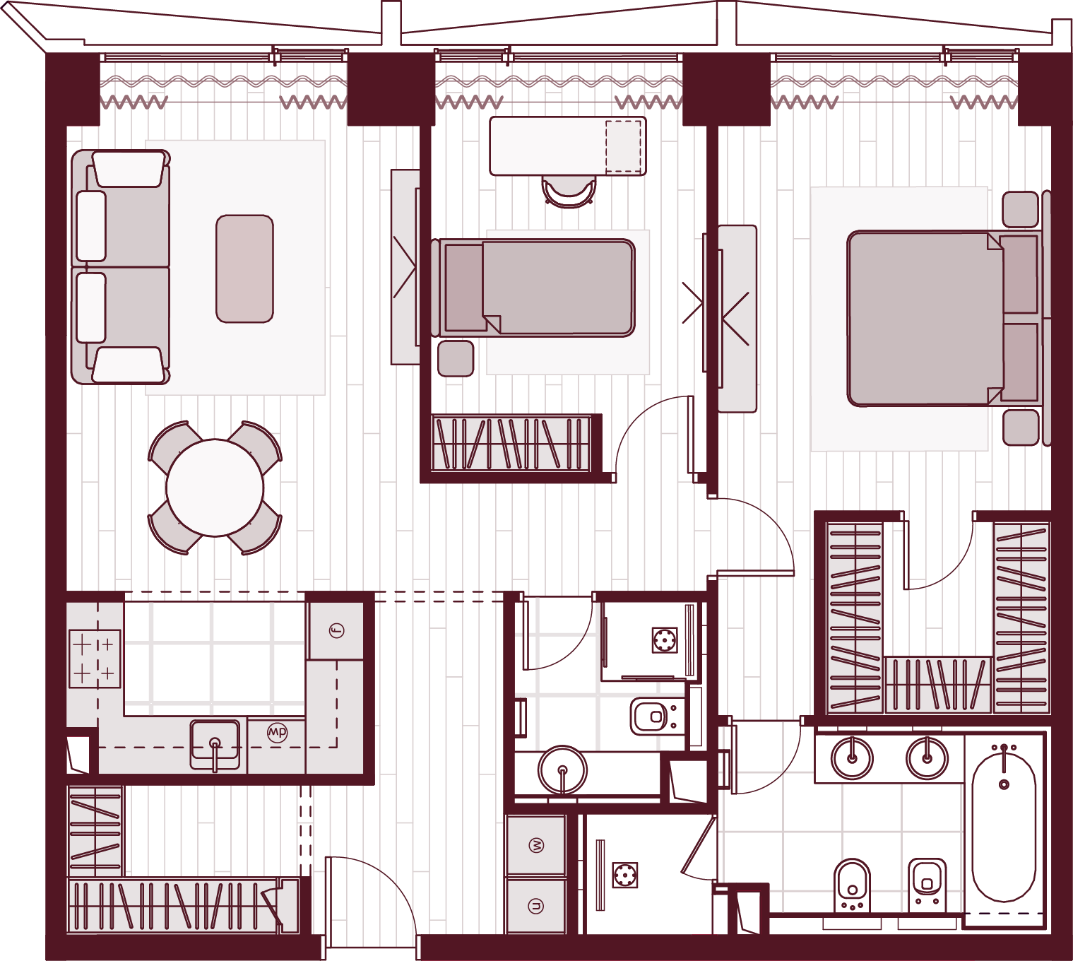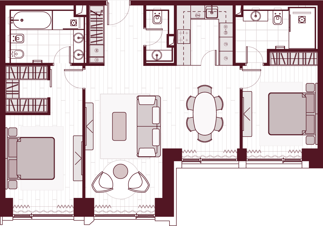 Более 80 вариантов планировочных решений от однокомнатных квартир до двухуровневых дуплексов и пентхаусов площадью от 40 до 398 м2. Панорамные окна, высокие потолки, мастер-спальни, балконы и террасы создают особенный комфорт и уют.