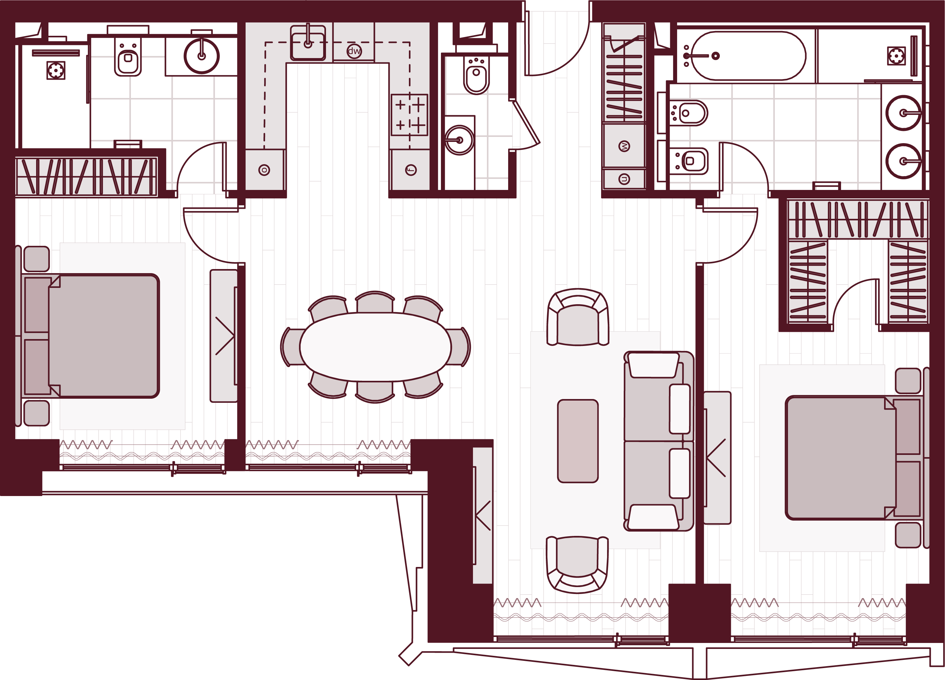 Более 80 вариантов планировочных решений от однокомнатных квартир до двухуровневых дуплексов и пентхаусов площадью от 40 до 398 м2. Панорамные окна, высокие потолки, мастер-спальни, балконы и террасы создают особенный комфорт и уют.