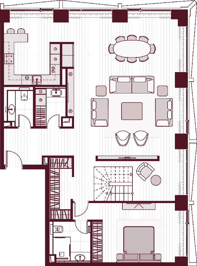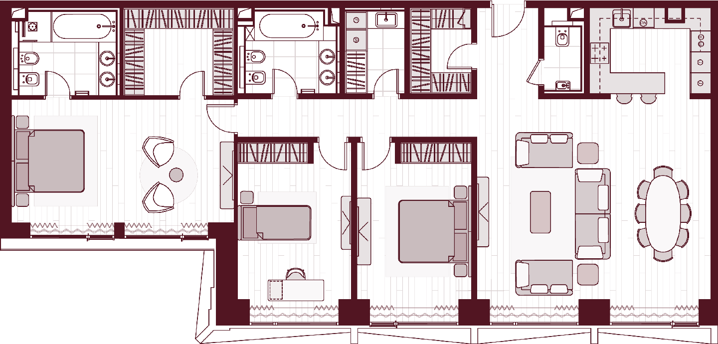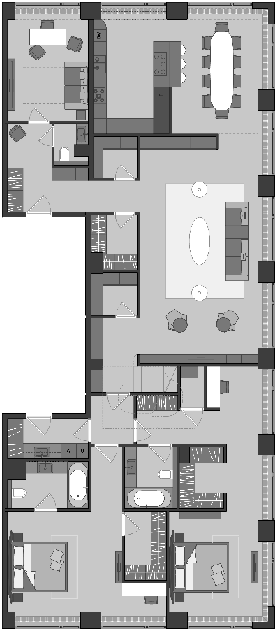 Более 80 вариантов планировочных решений от однокомнатных квартир до двухуровневых дуплексов и пентхаусов площадью от 40 до 398 м2. Панорамные окна, высокие потолки, мастер-спальни, балконы и террасы создают особенный комфорт и уют.
