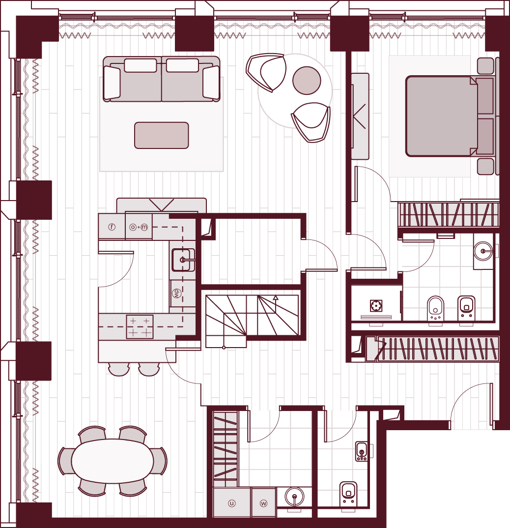 Более 80 вариантов планировочных решений от однокомнатных квартир до двухуровневых дуплексов и пентхаусов площадью от 40 до 398 м2. Панорамные окна, высокие потолки, мастер-спальни, балконы и террасы создают особенный комфорт и уют.