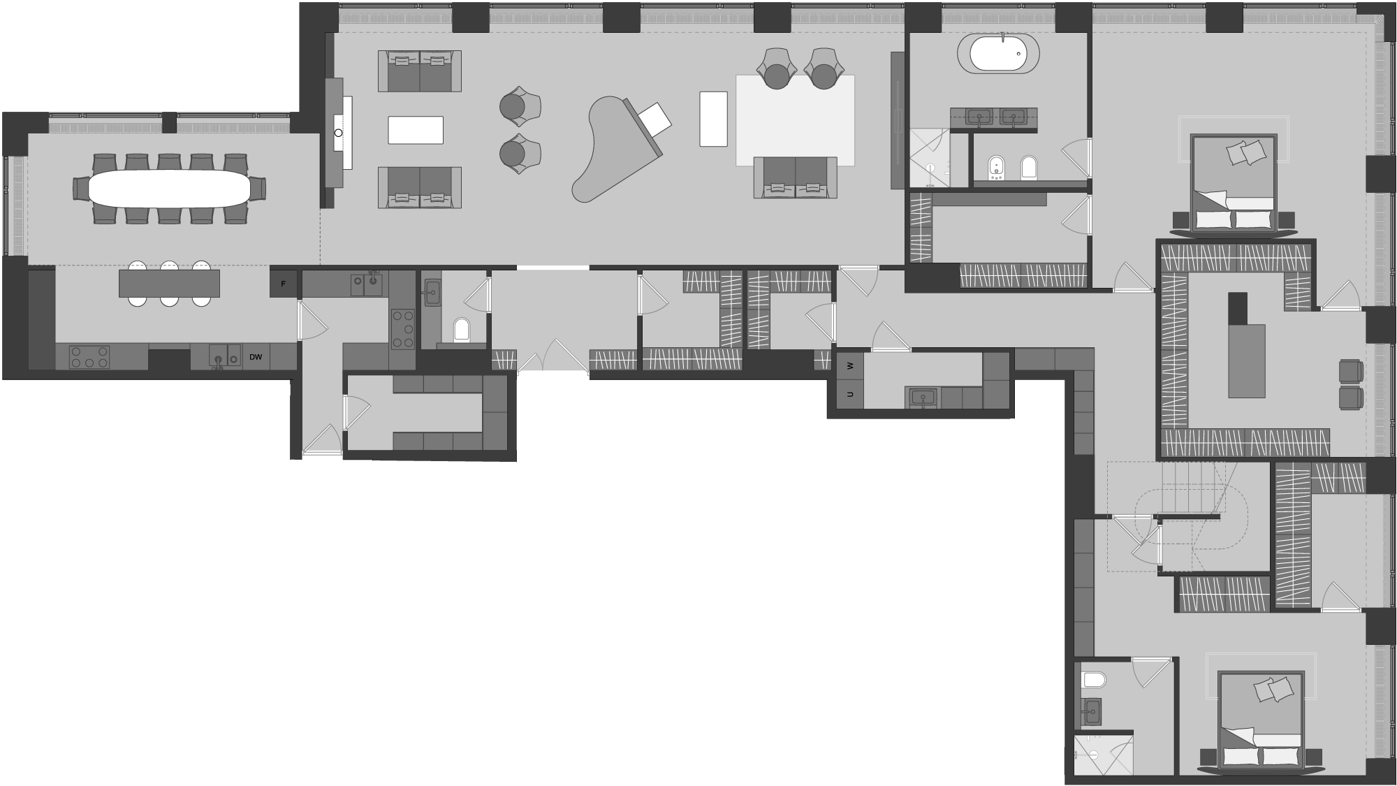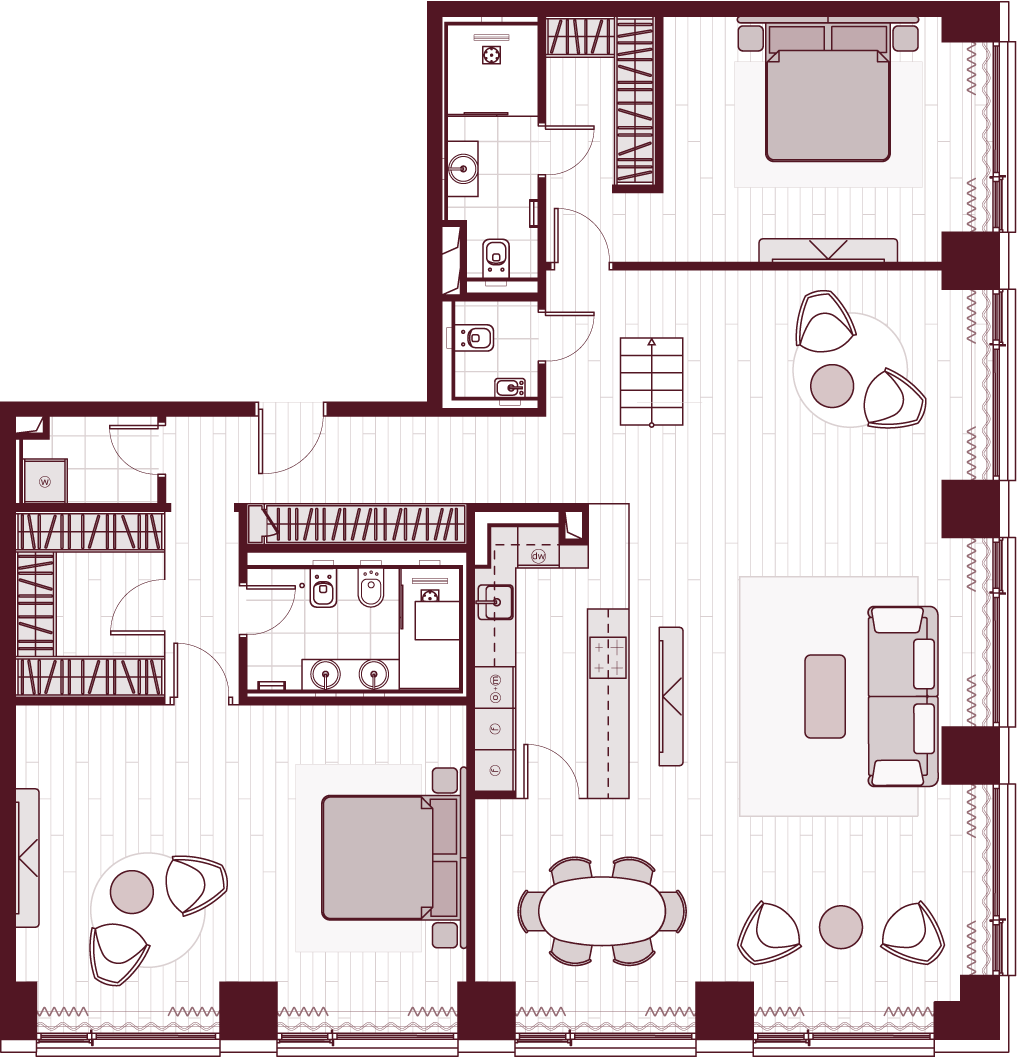Более 80 вариантов планировочных решений от однокомнатных квартир до двухуровневых дуплексов и пентхаусов площадью от 40 до 398 м2. Панорамные окна, высокие потолки, мастер-спальни, балконы и террасы создают особенный комфорт и уют.