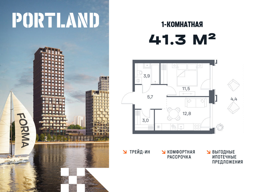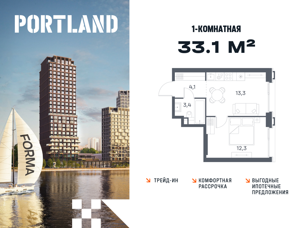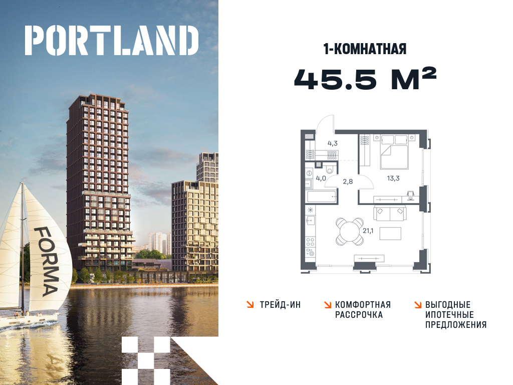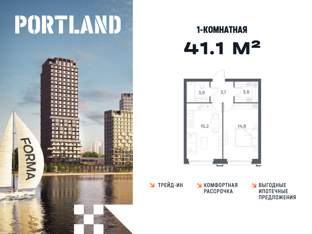 Однокомнатные квартиры в ЖК Portland (Портленд)