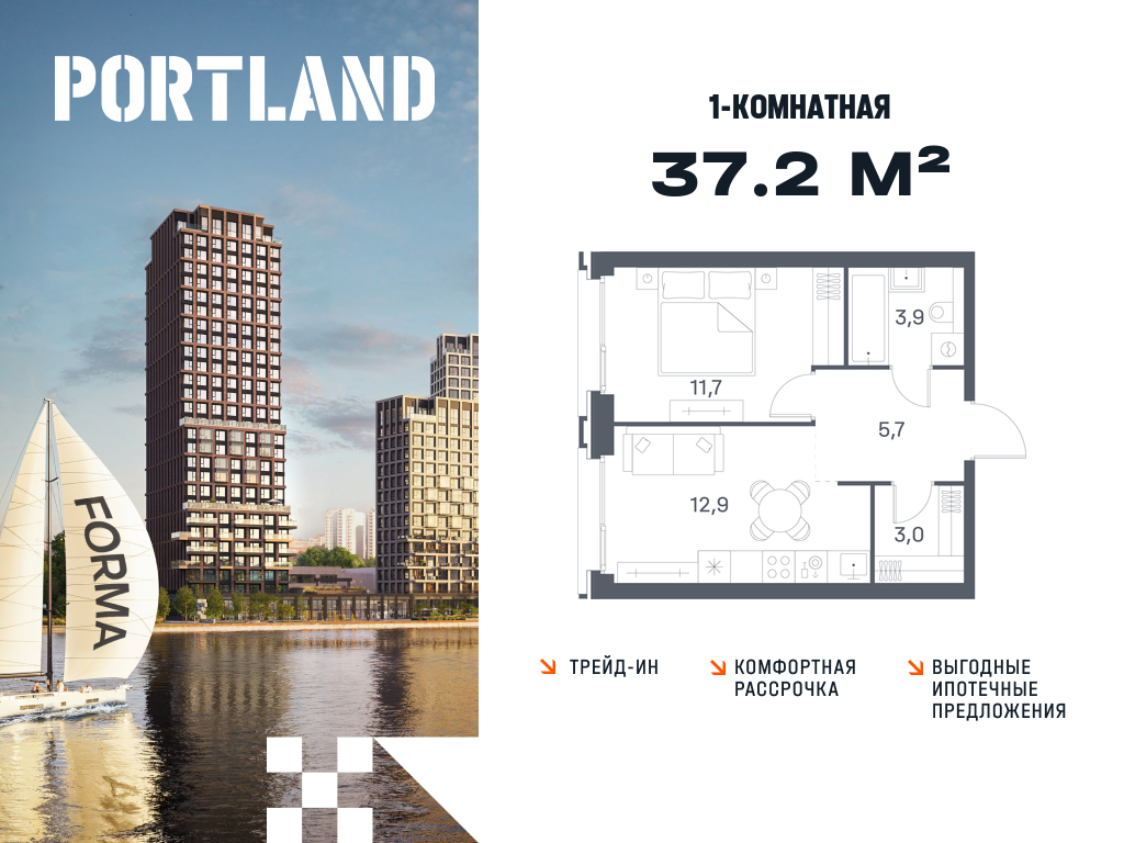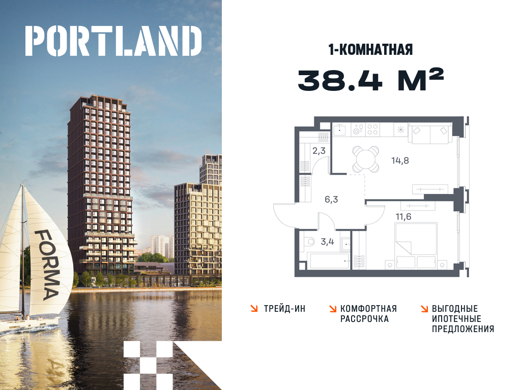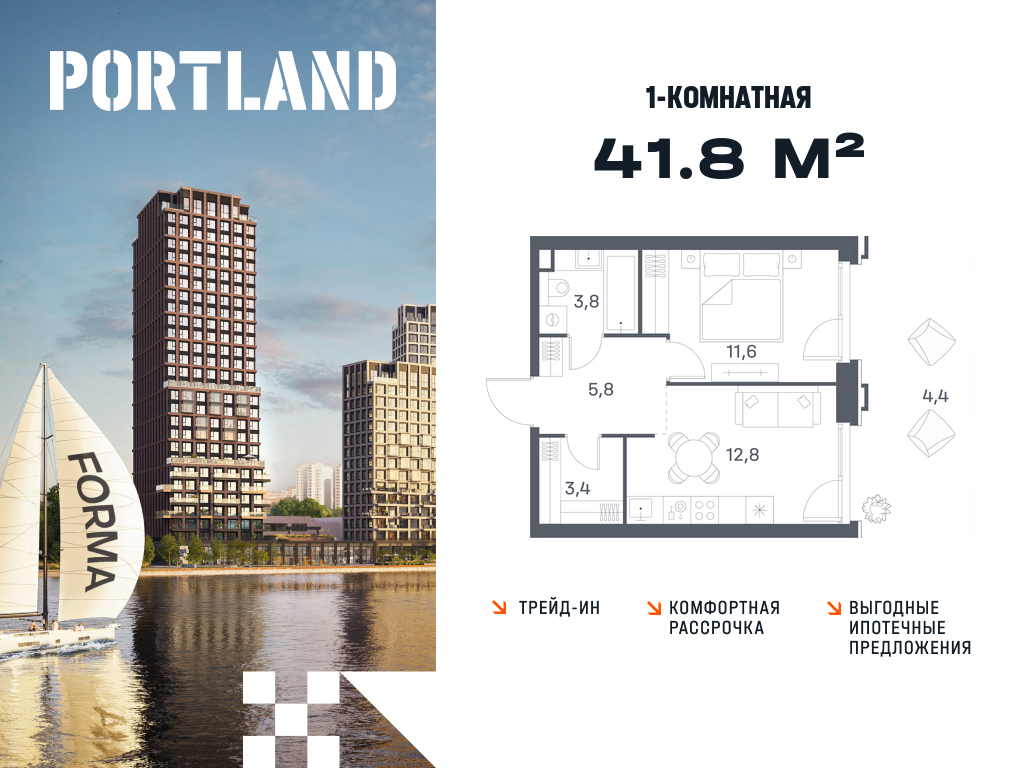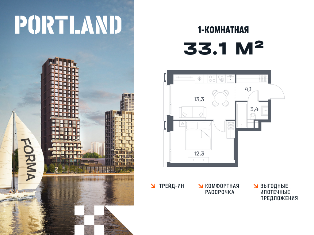 Однокомнатные квартиры в ЖК Portland (Портленд)