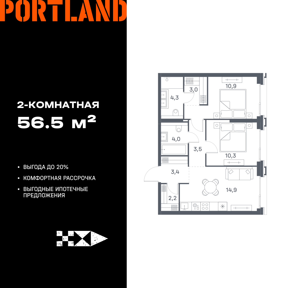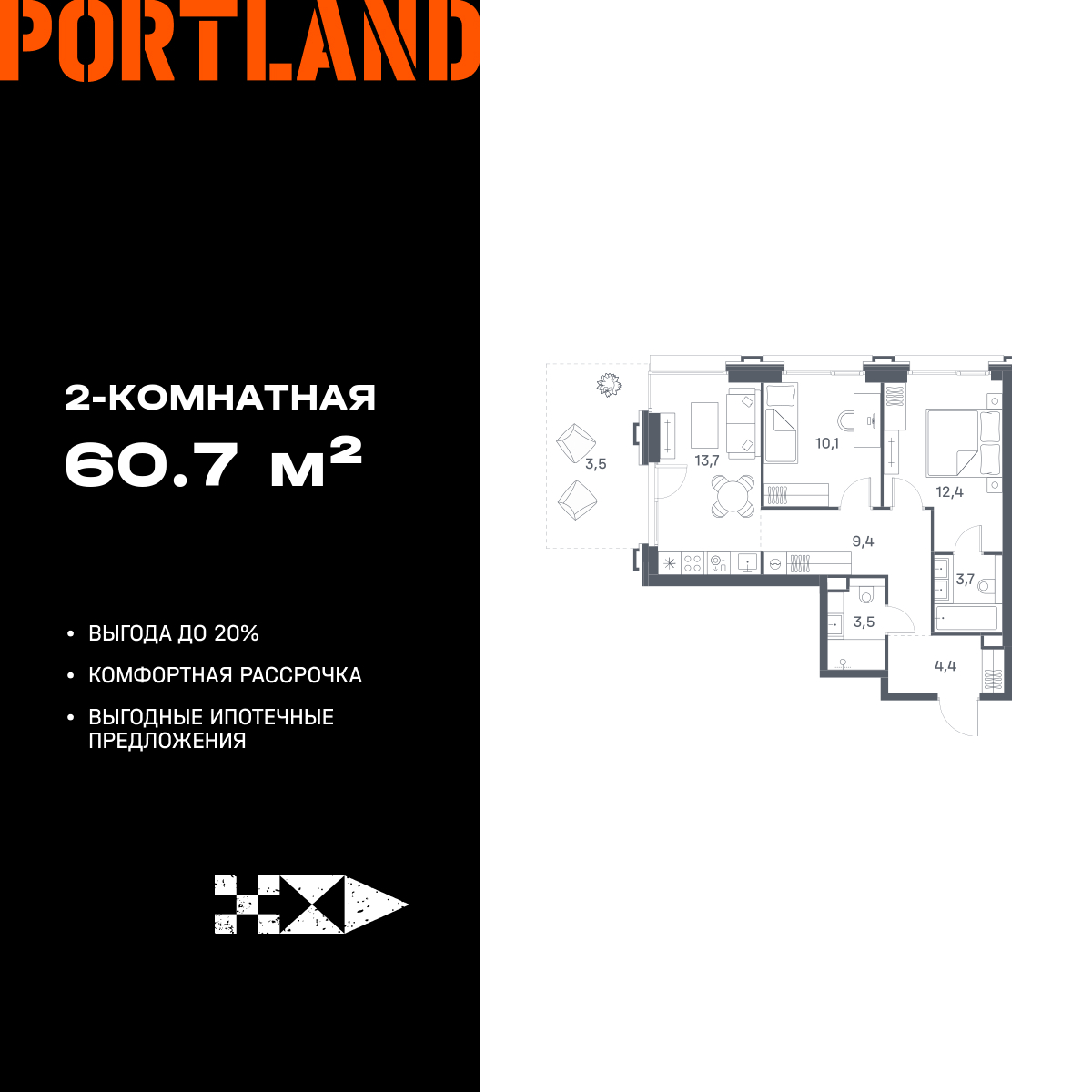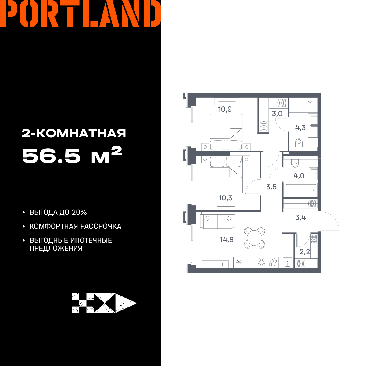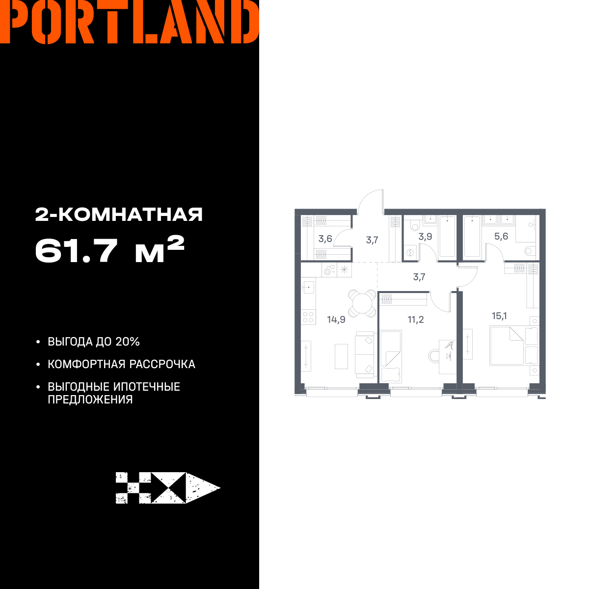 Двухкомнатные квартиры в ЖК Portland (Портленд)