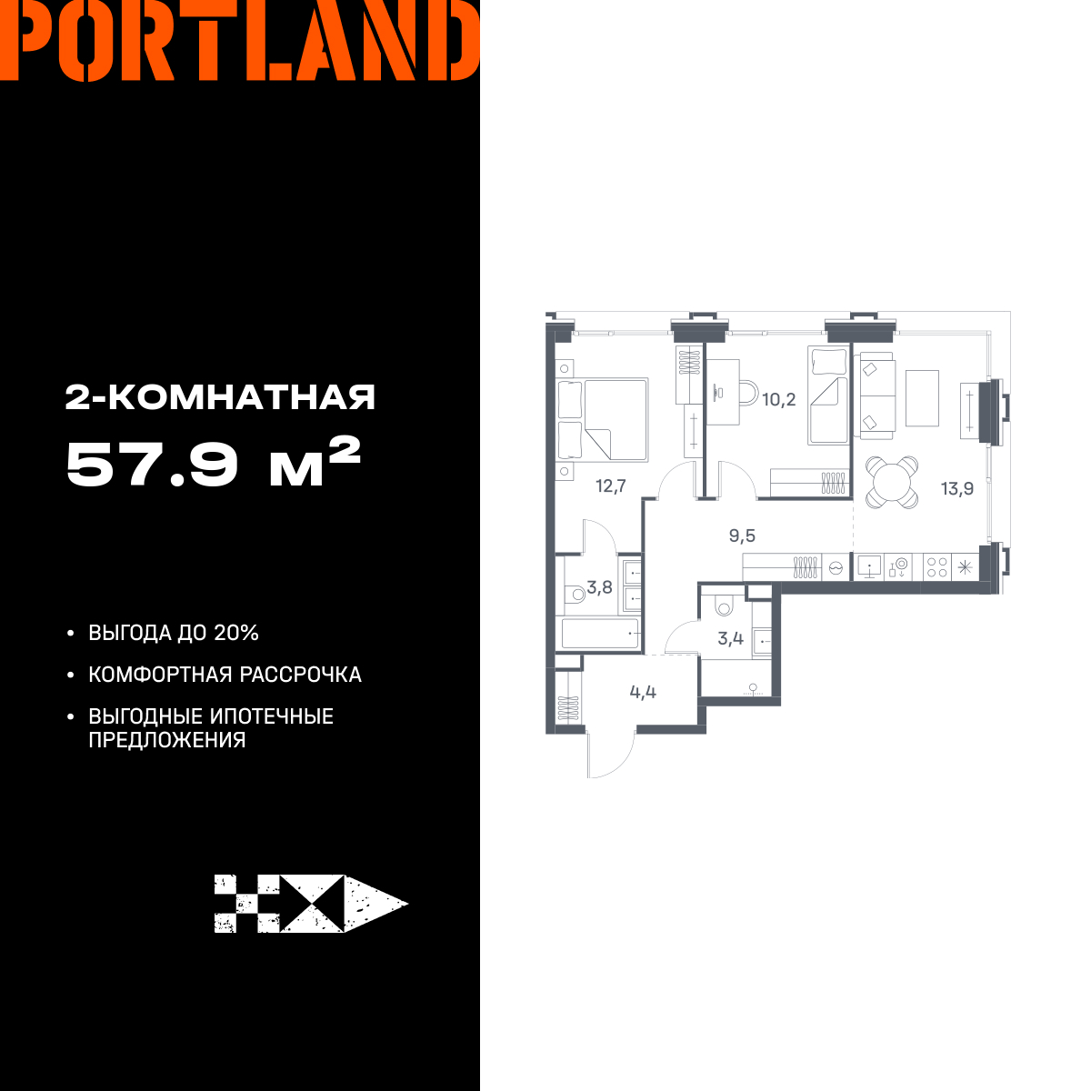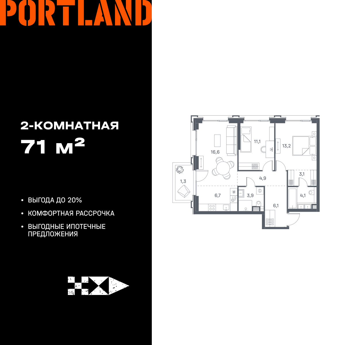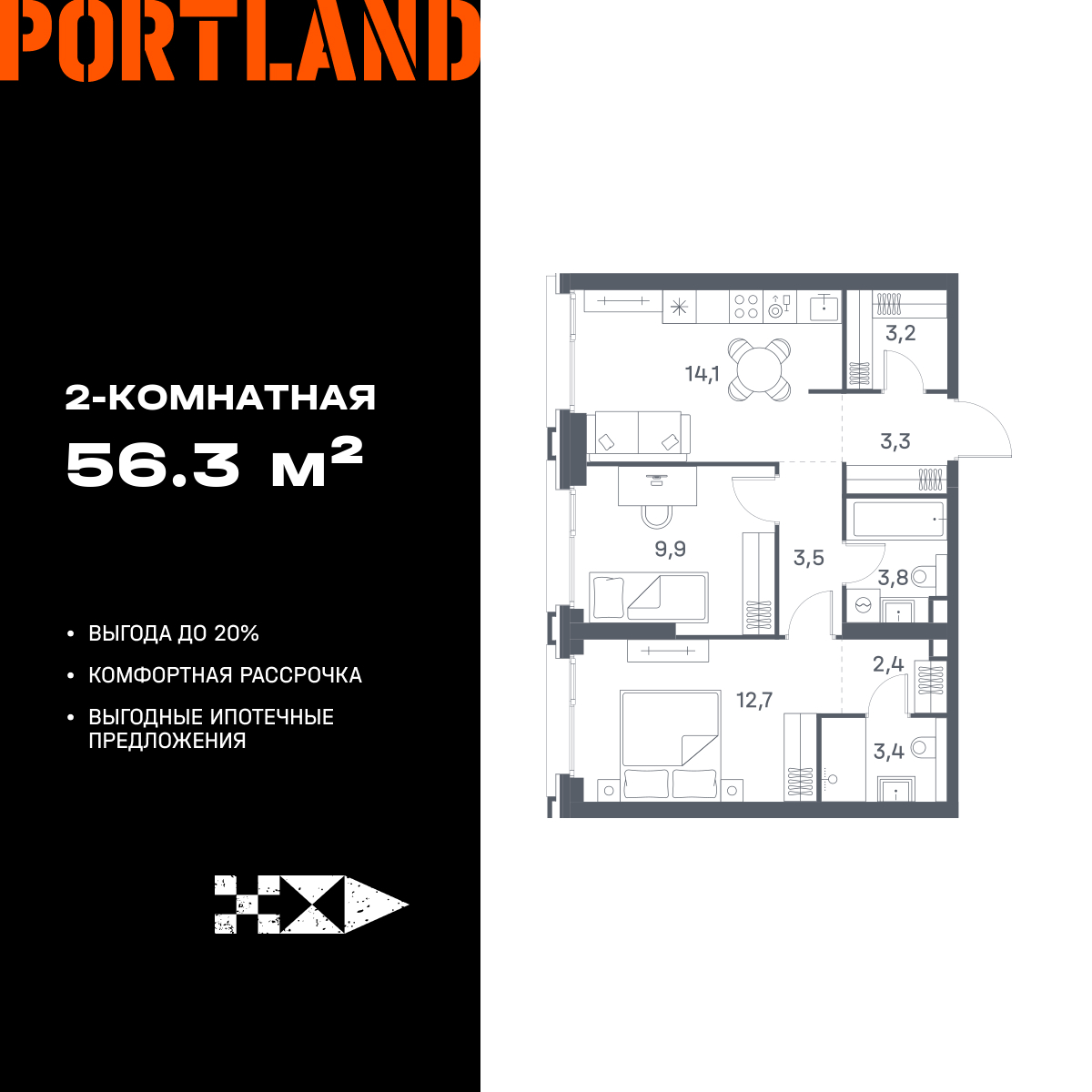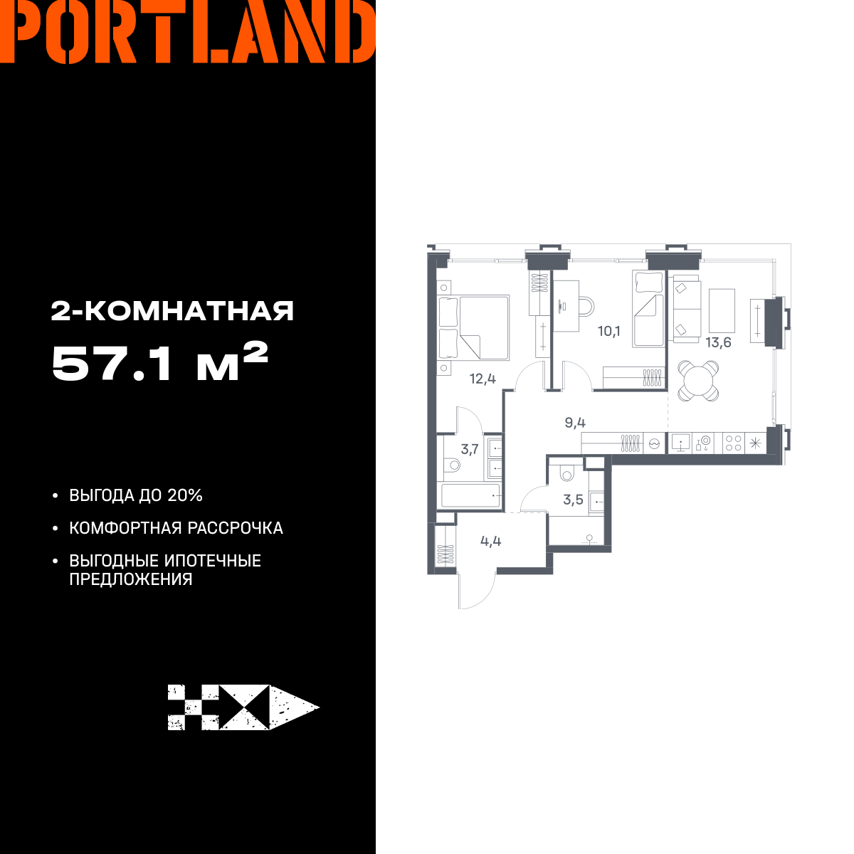 Двухкомнатные квартиры в ЖК Portland (Портленд)