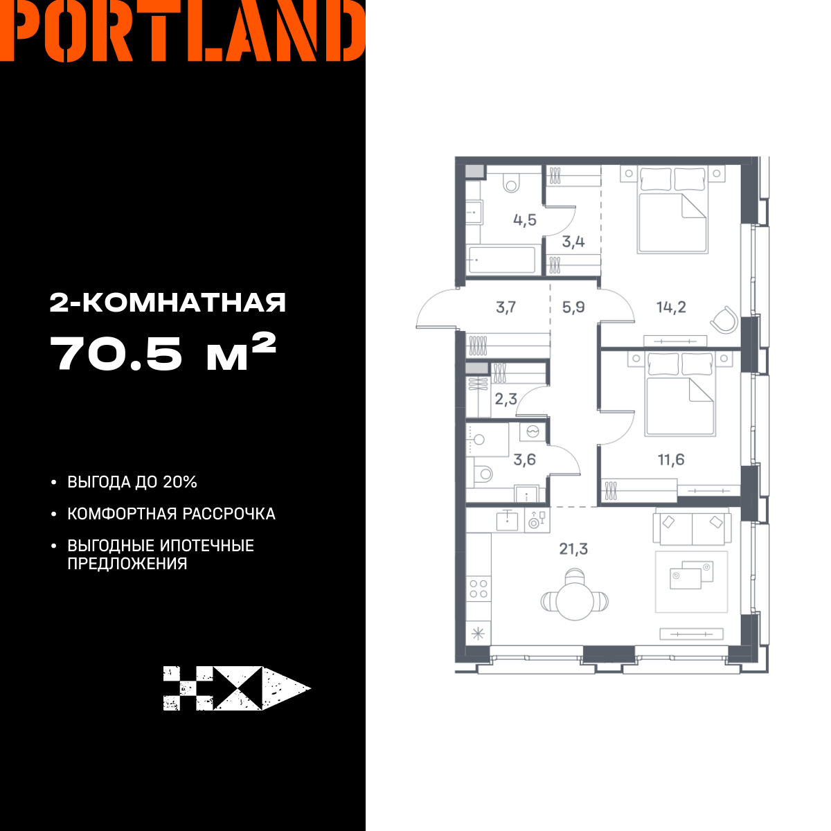 Двухкомнатные квартиры в ЖК Portland (Портленд)