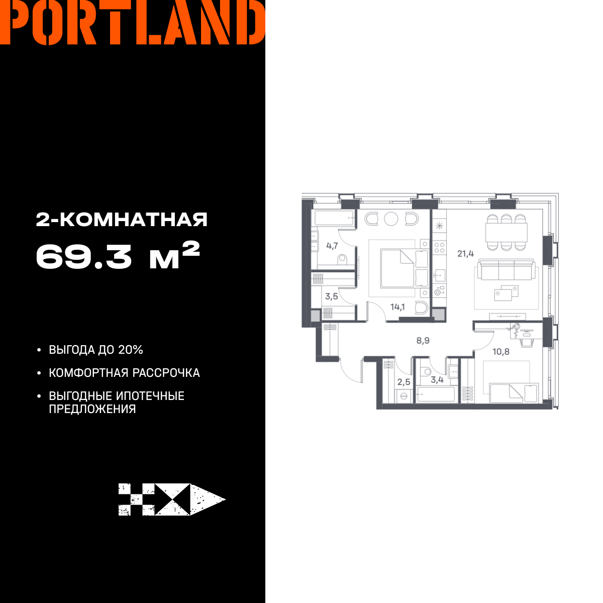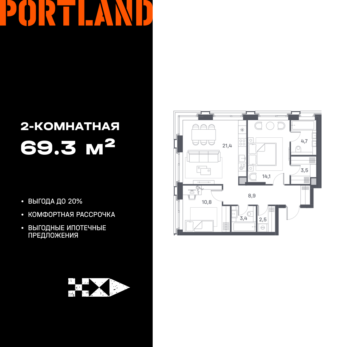Двухкомнатные квартиры в ЖК Portland (Портленд)