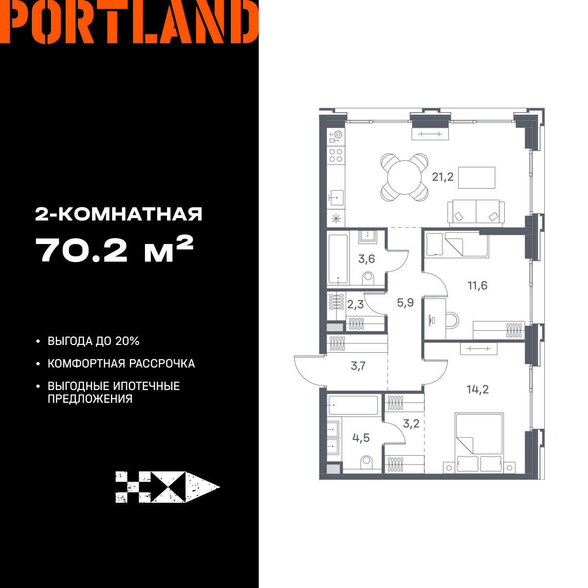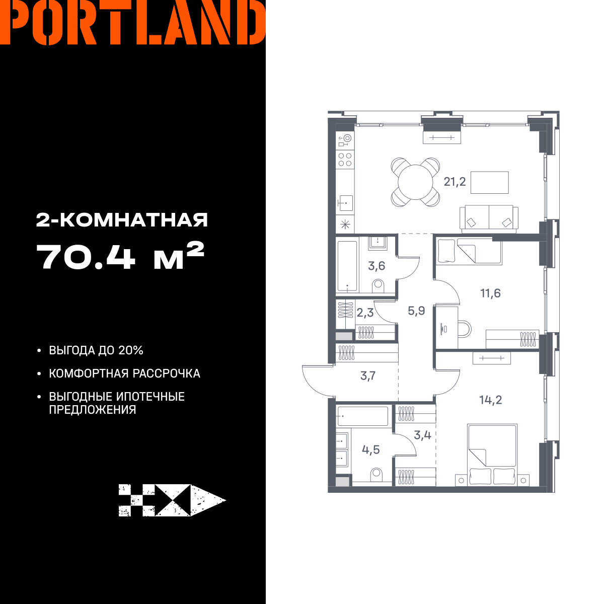 Евро двухкомнатные квартиры в ЖК Portland (Портленд)