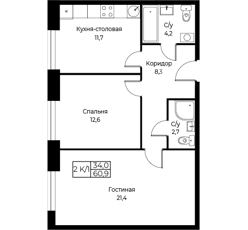 - Цена за м2 270 000 руб