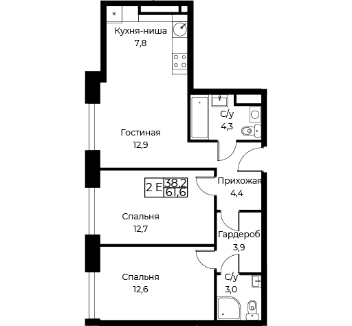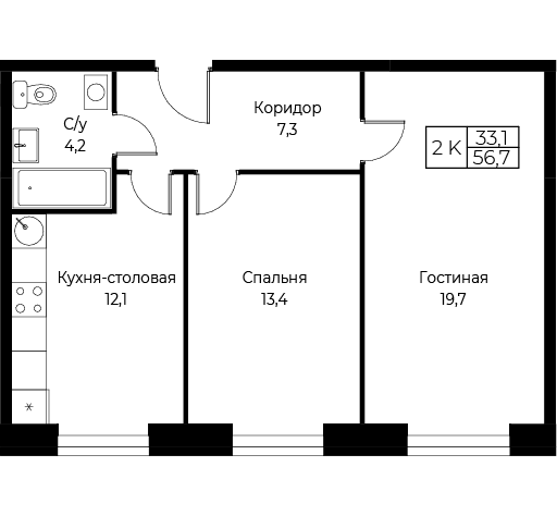 Двухкомнатные квартиры в Комплекс апартаментов AIST RESIDENCE (Аист Резиденс) - страница 3