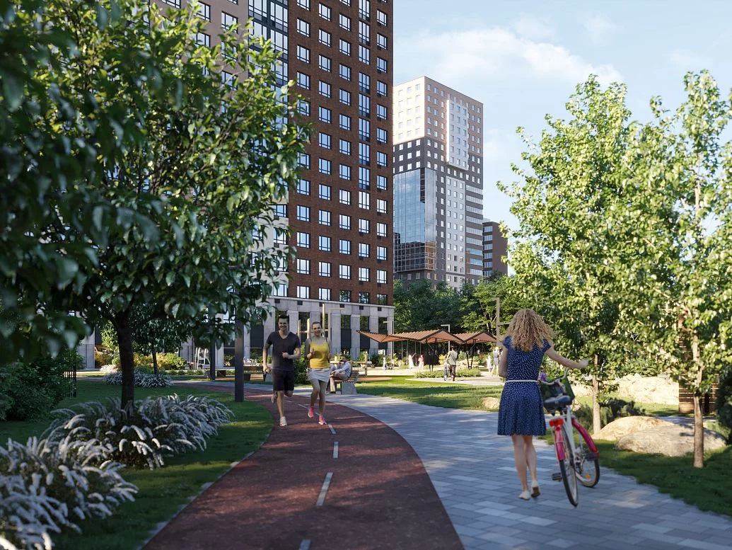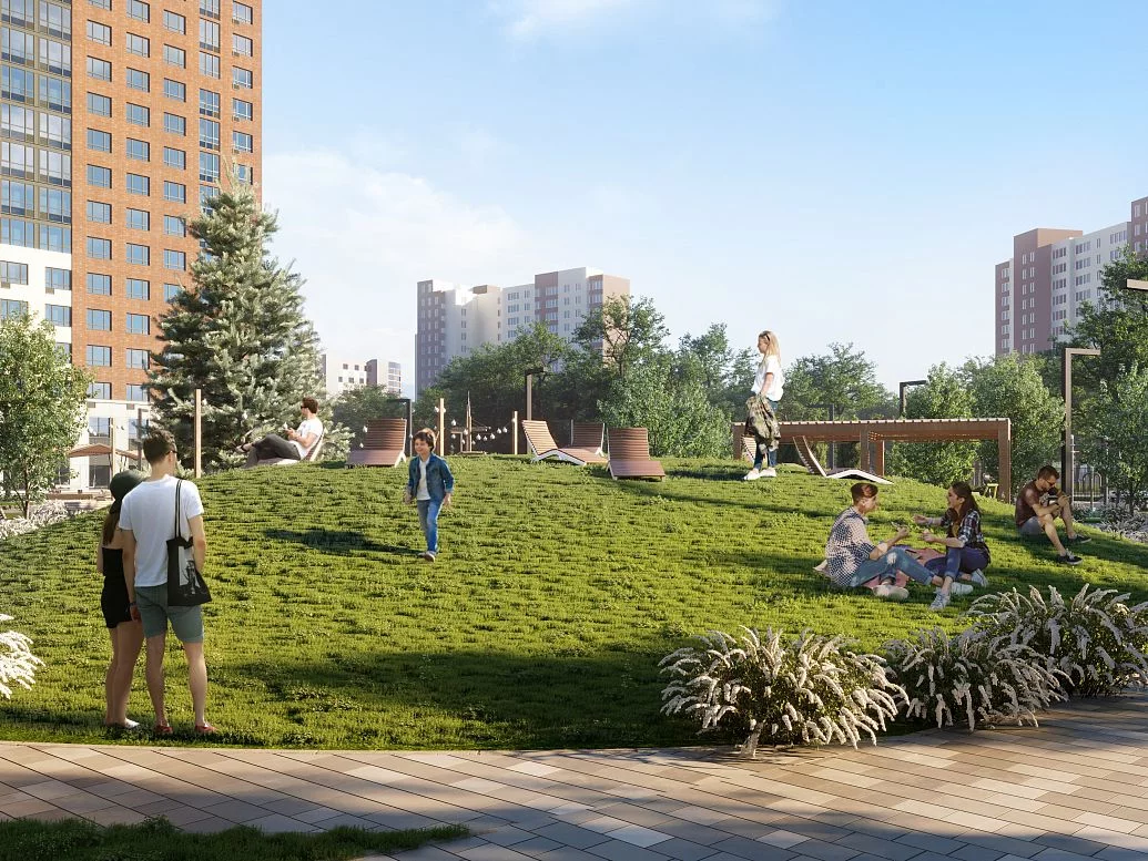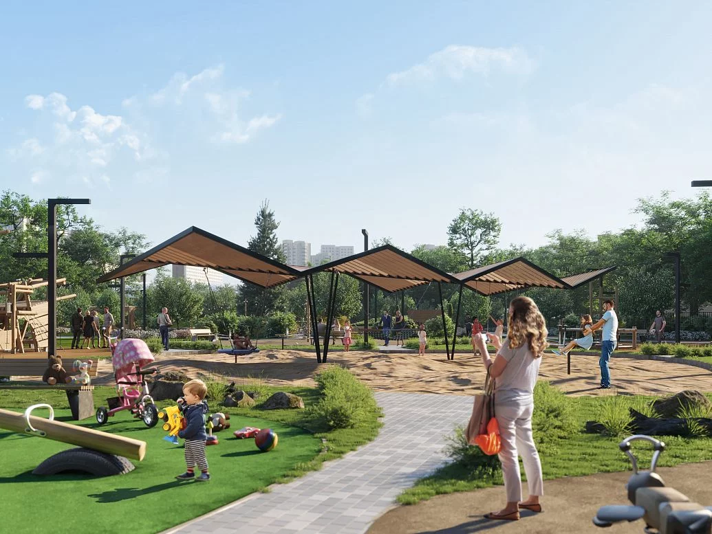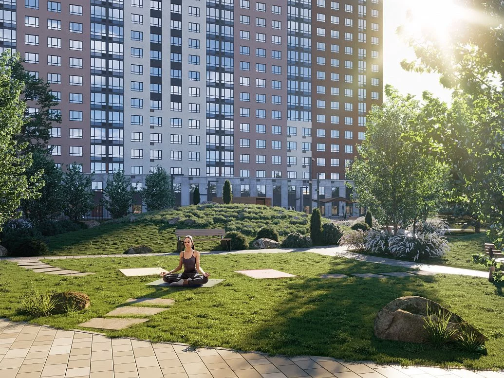 На придомовой территории будет создан ландшафтный двор-парк. Во дворе оборудуют многофункциональные спортивные и игровые площадки для детей разных возрастов, беговые и велодорожки, зону для медитации и занятий йогой, лаунж-зоны для отдыха с беседкой, качелями и лежаками, зону street work-out и столы для пинг-понга.