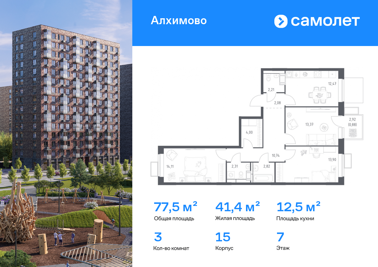 Трехкомнатные квартиры в ЖК «Алхимово»