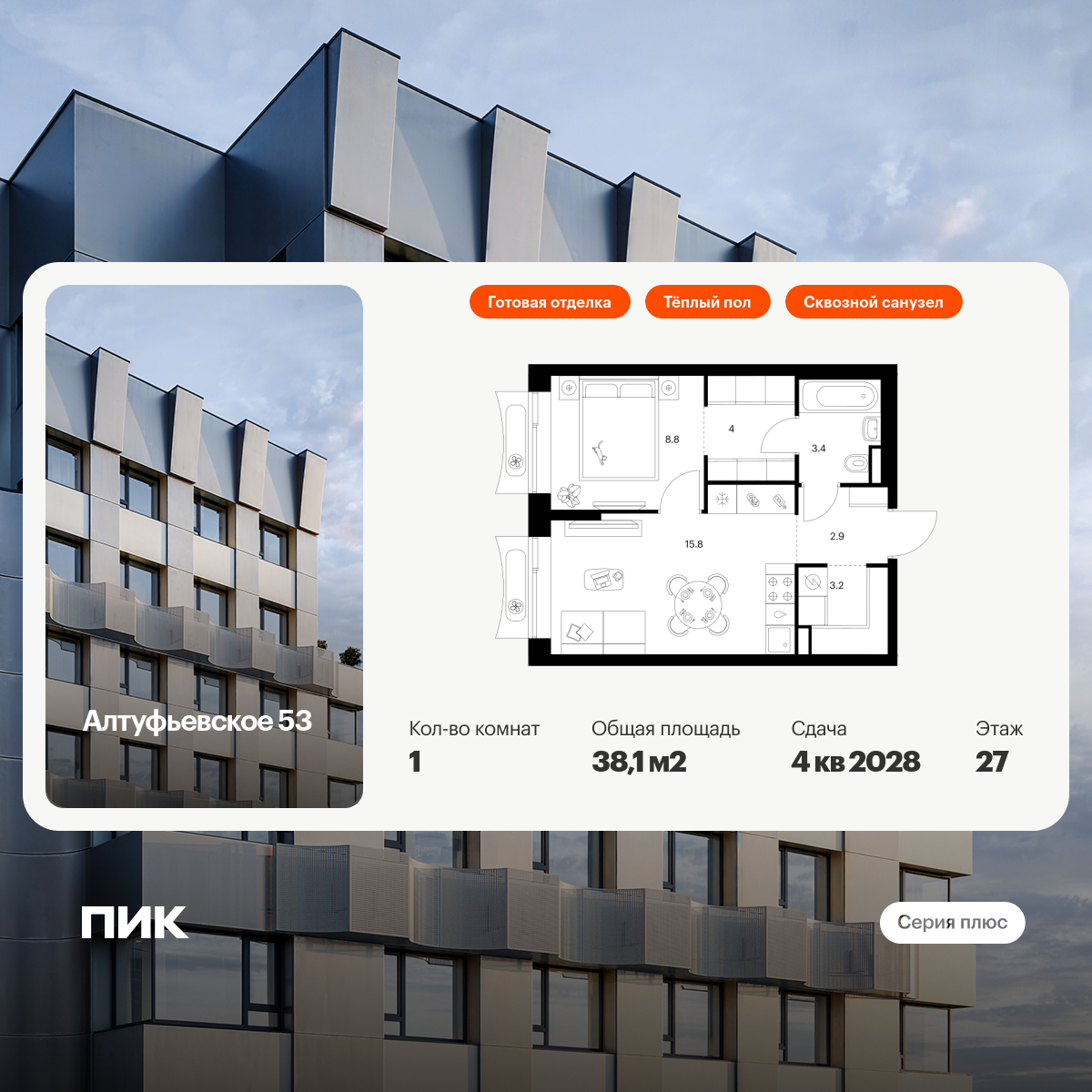 - Цена за м2 438 400 руб
