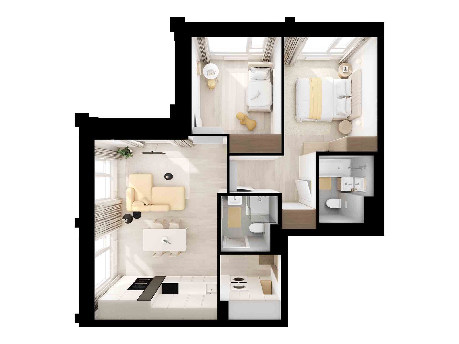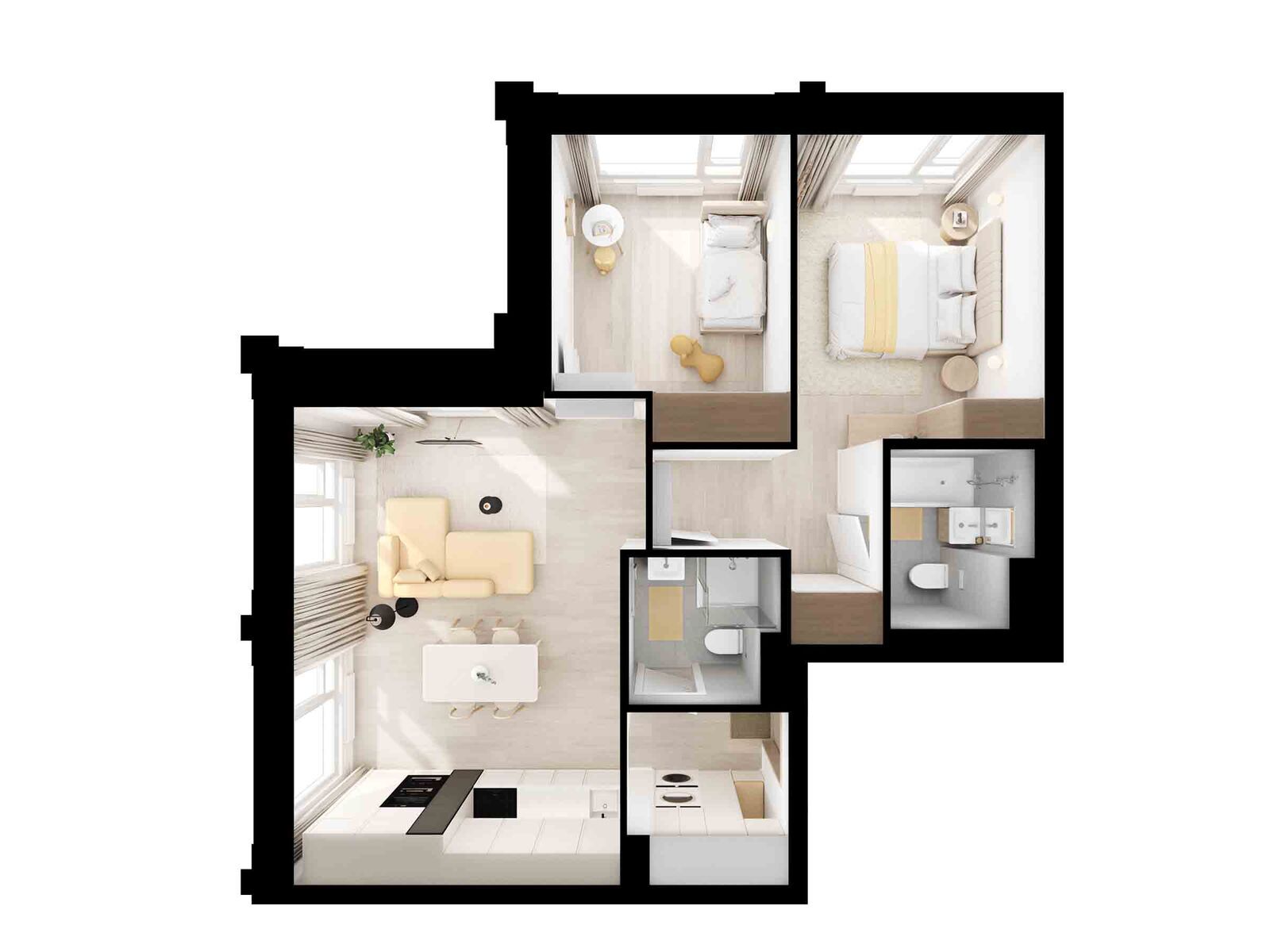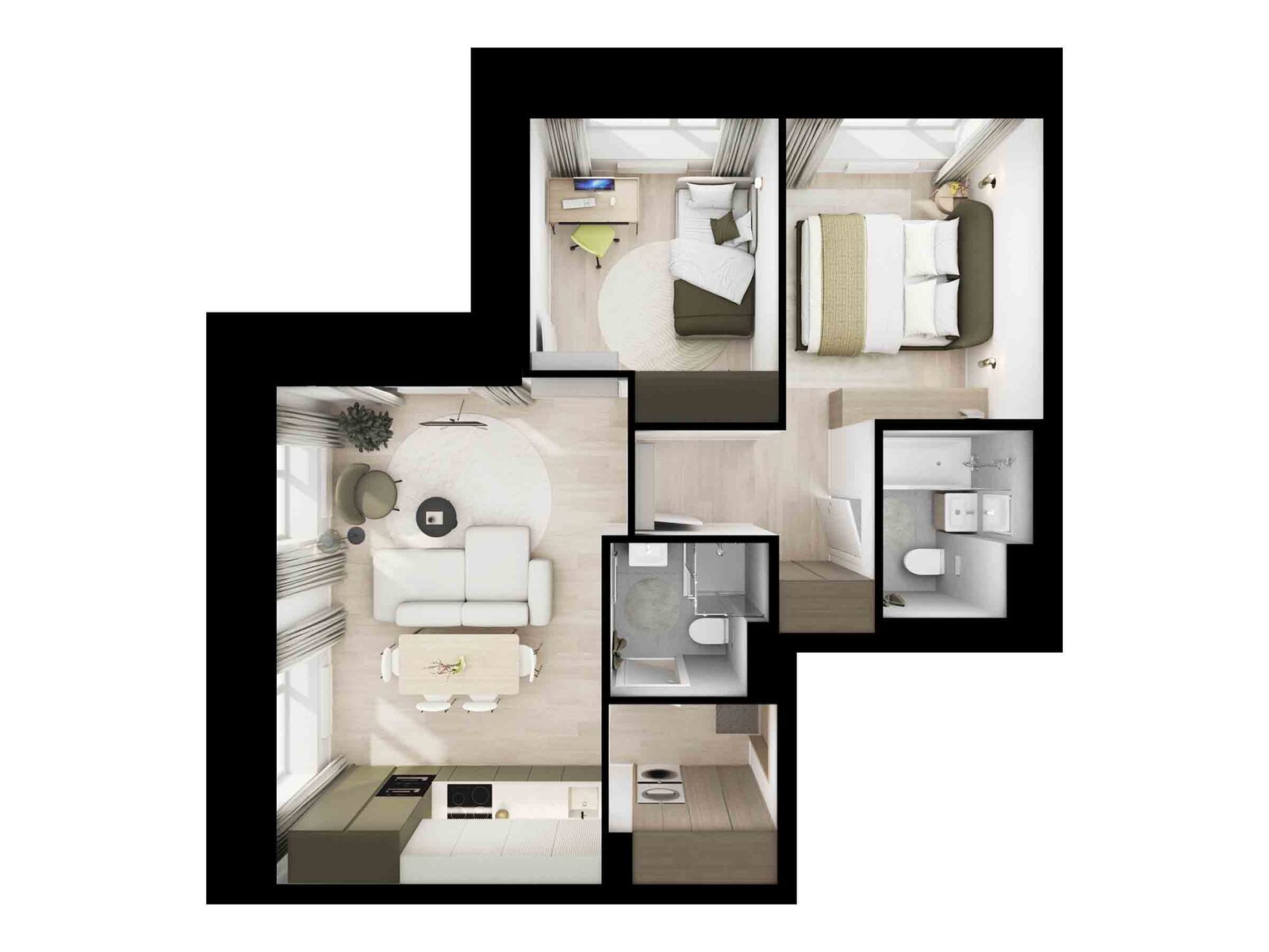 Архитектурную концепцию проекта разработало российское бюро M.A.M. Искусная работа с формой зданий позволила проекту воплотить в себе современную элегантность и функциональность. В проекте представлено множество планировок семейного формата: с мастер-спальнями и комнатами, разнесёнными по разным сторонам квартиры, чтобы у каждого было своё личное пространство. Большие семьи также оценят удобные планировки с постирочными и гардеробными. А также уникальные форматы квартир с террасами, балконами и лоджиями.