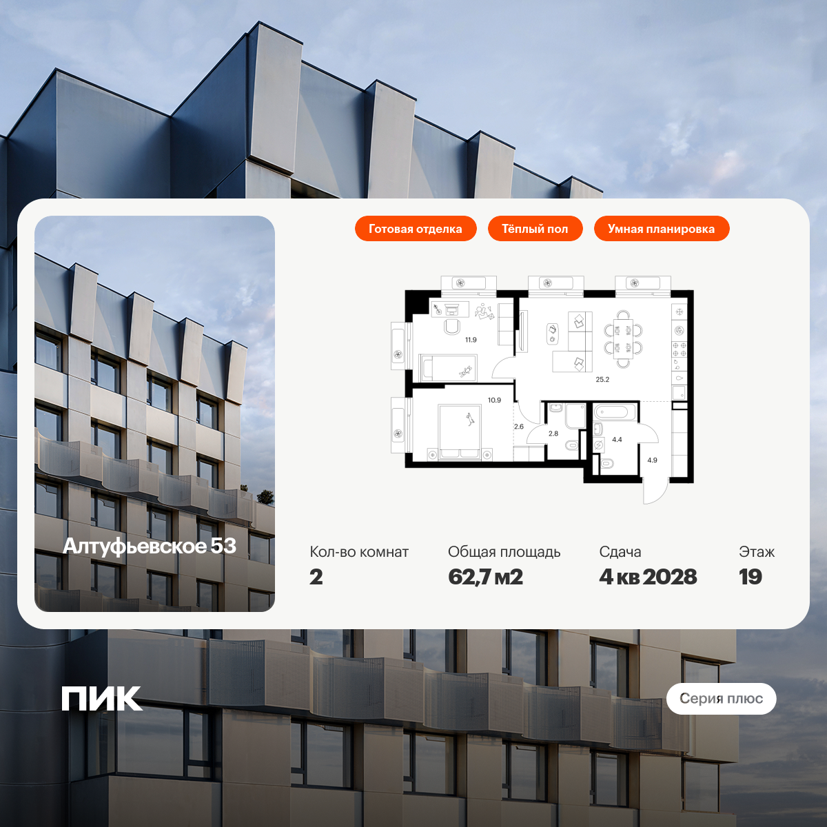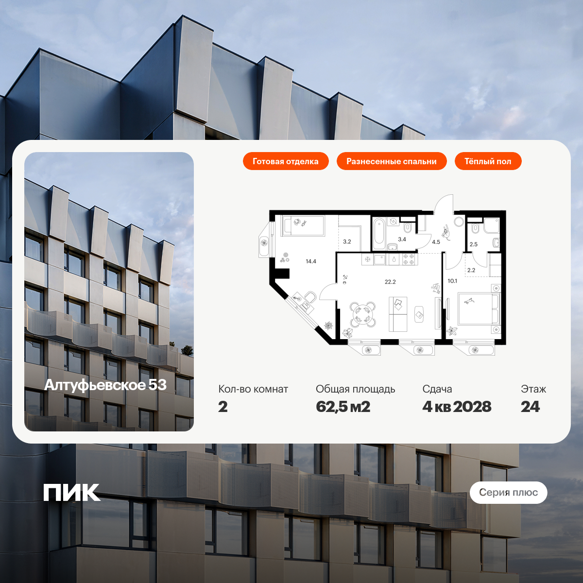 «Алтуфьевское 53» — современный проект «Серии плюс» на северо-востоке Москвы. Рядом удобный выезд на Алтуфьевское шоссе, а оттуда — на ТТК и МКАД, так что дорога до центра Москвы на машине займёт 20 минут. До станции метро «Отрадное» можно доехать за 15 минут на транспорте или по тихим светлым улицам дойти пешком за 25 минут.