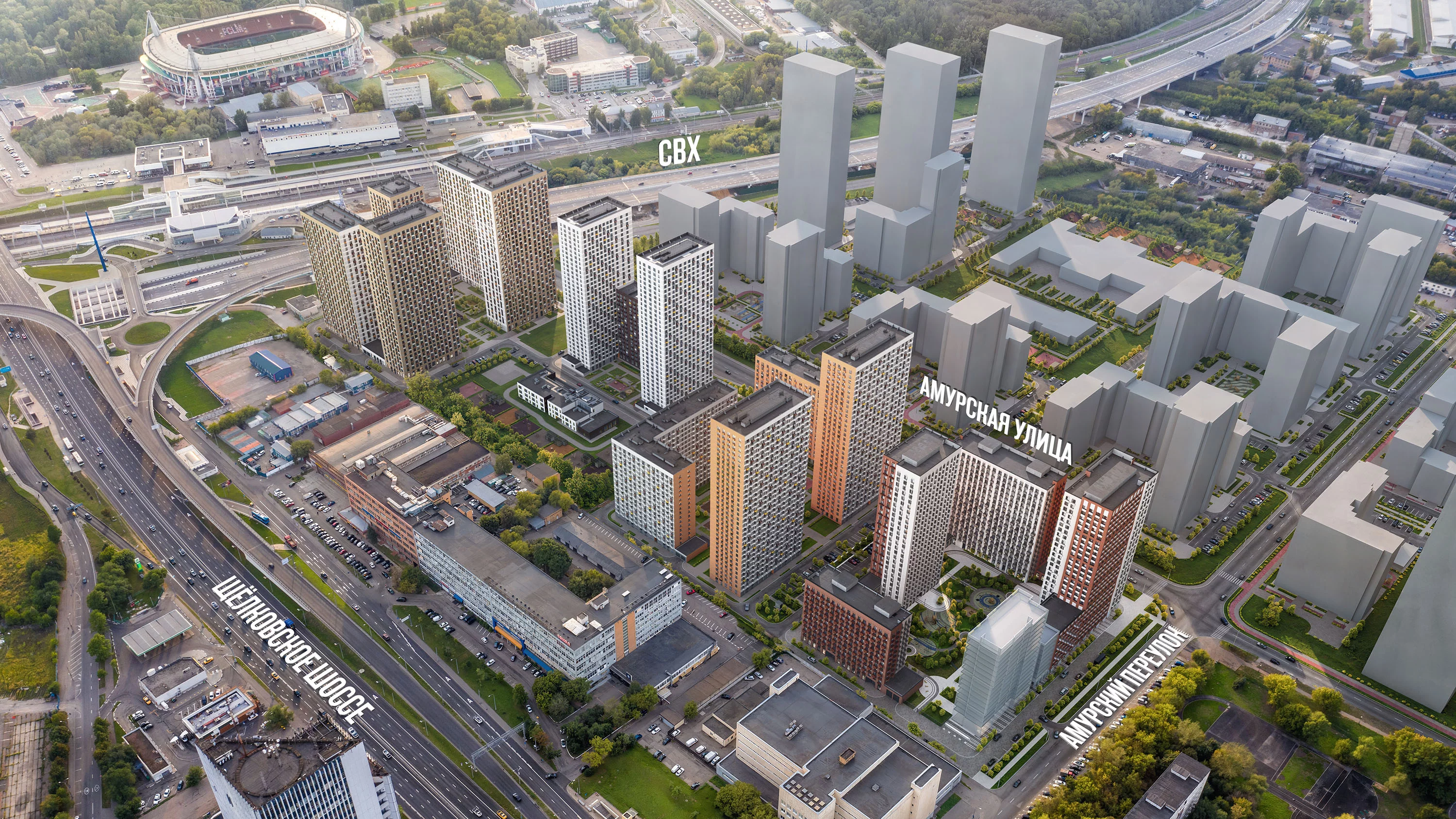 «Амурский парк» — проект «Серии плюс» с видом на Измайловский парк. Квартал возводится на востоке Москвы, в 10 минутах пешком от станций метро «Черкизовская» и МЦК «Локомотив». Доехать от проекта на машине до ТТК или МКАД можно за 15 минут, а до Садового кольца — за 17 минут.