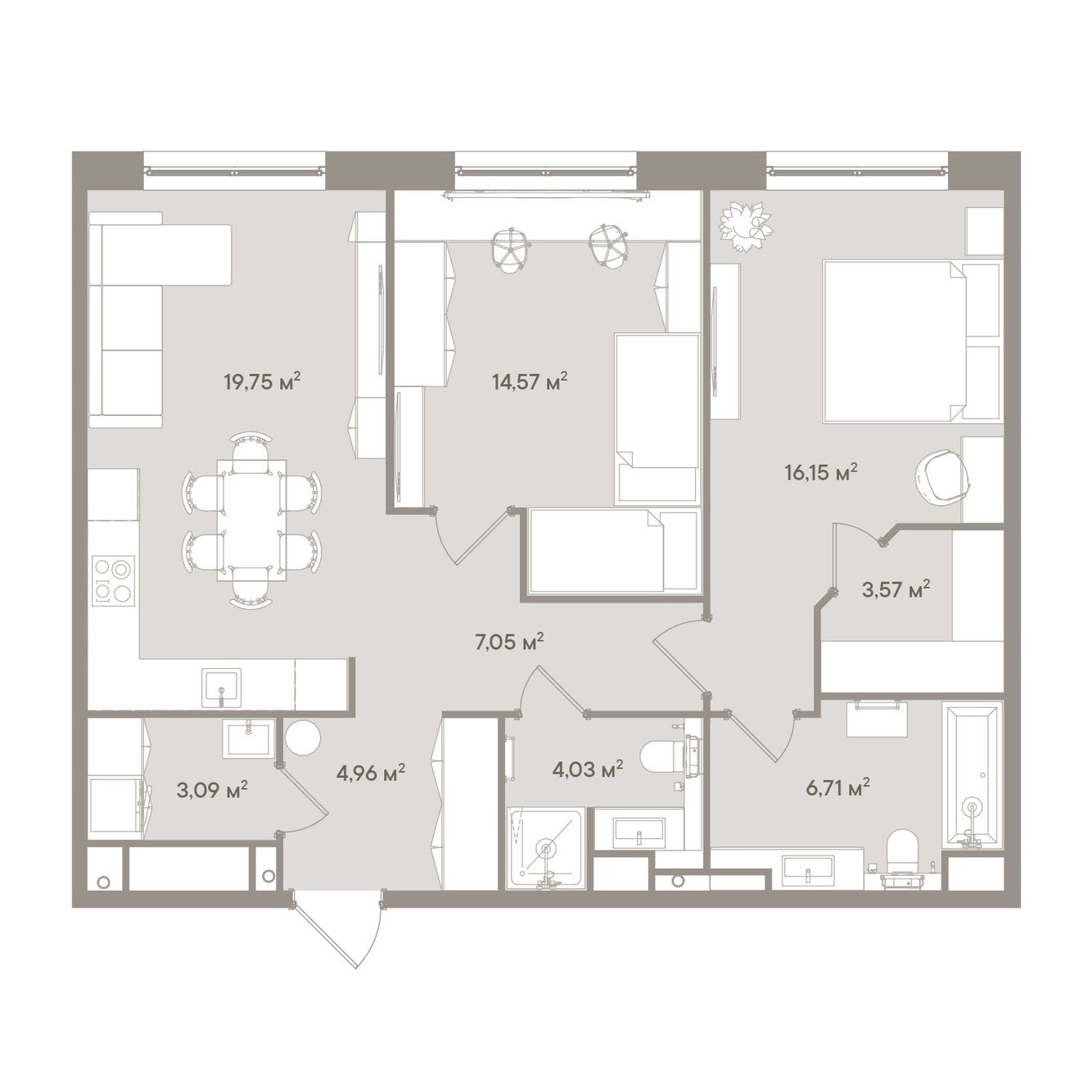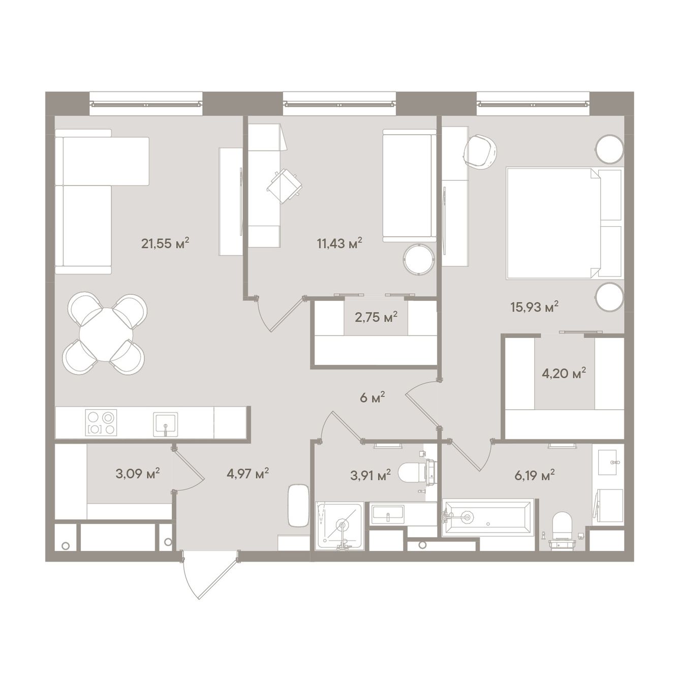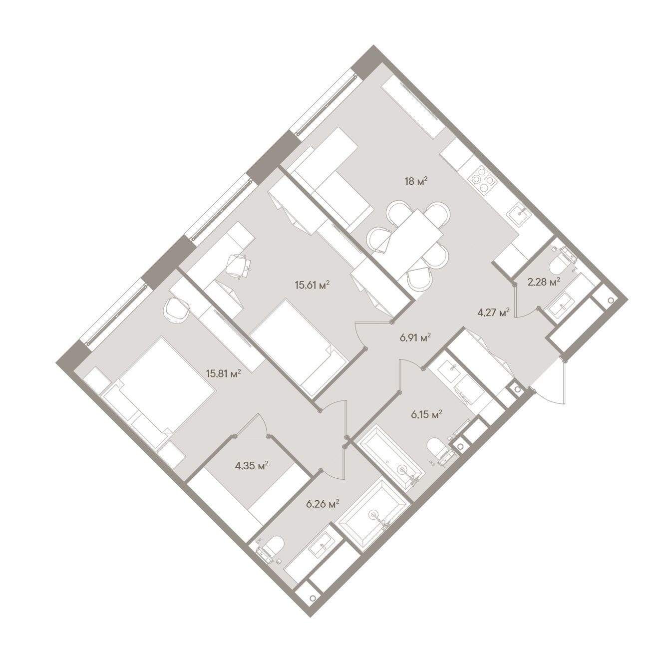 Трехкомнатные квартиры в Апарт-комплекс D'ORO MILLE (Доро Милле)