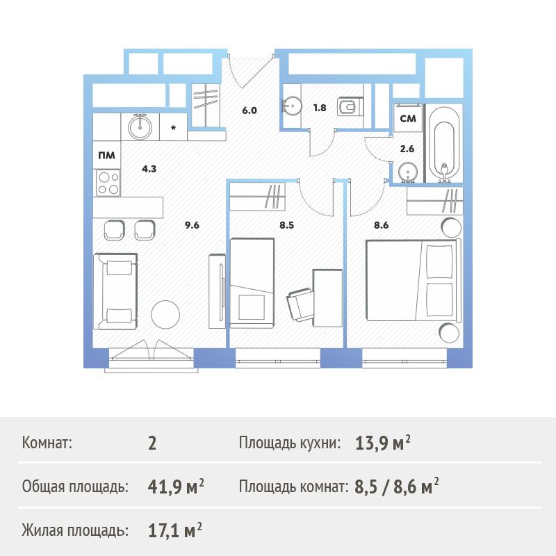 Двухкомнатные квартиры в ЖК balance (баланс)