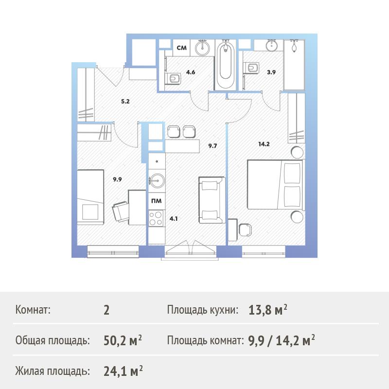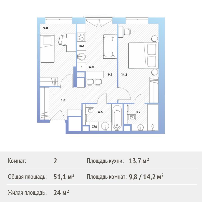 В готовых домах высотой от 9 до 30 этажей квартиры с отделкой и эффективными планировками. Кухня совмещена с гостиной, а количество комнат всегда означает количество спален.