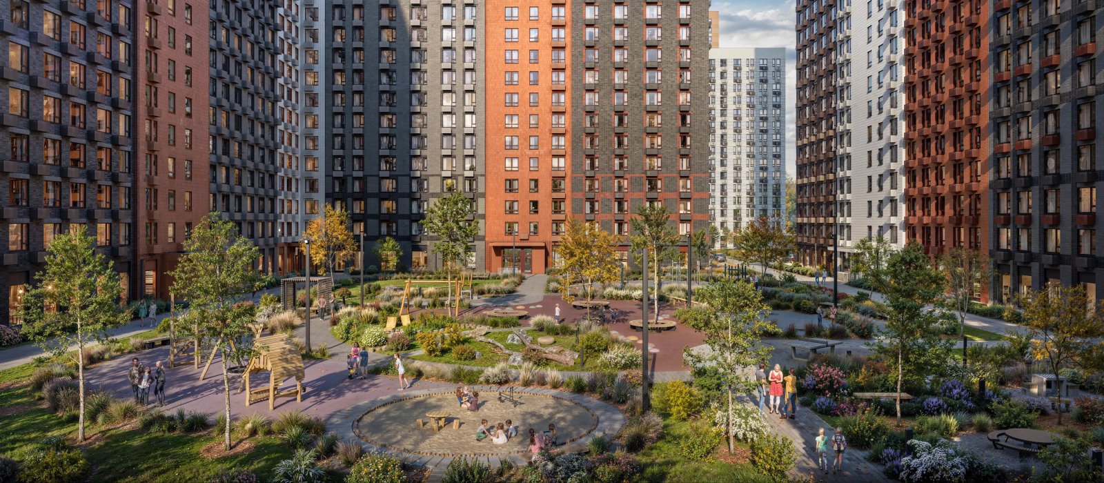 На территории квартала будут построены 22 дома, две школы, поликлиники и пять детских садов. Один из центральных элементов проекта — широкий пешеходный бульвар, где мы создали пространства для спорта, прогулок и отдыха. Яркой точкой притяжения стал PlayHub «Ферма» — масштабная игровая зона с домом-мельницей, искусственным ручьём и развивающими элементами для детей. В 2024 году PlayHub стал победителем «Всероссийской премии лучших проектов создания игровой среды» и получил награду «Лучшая реализация игровой площадки среди девелоперских проектов».