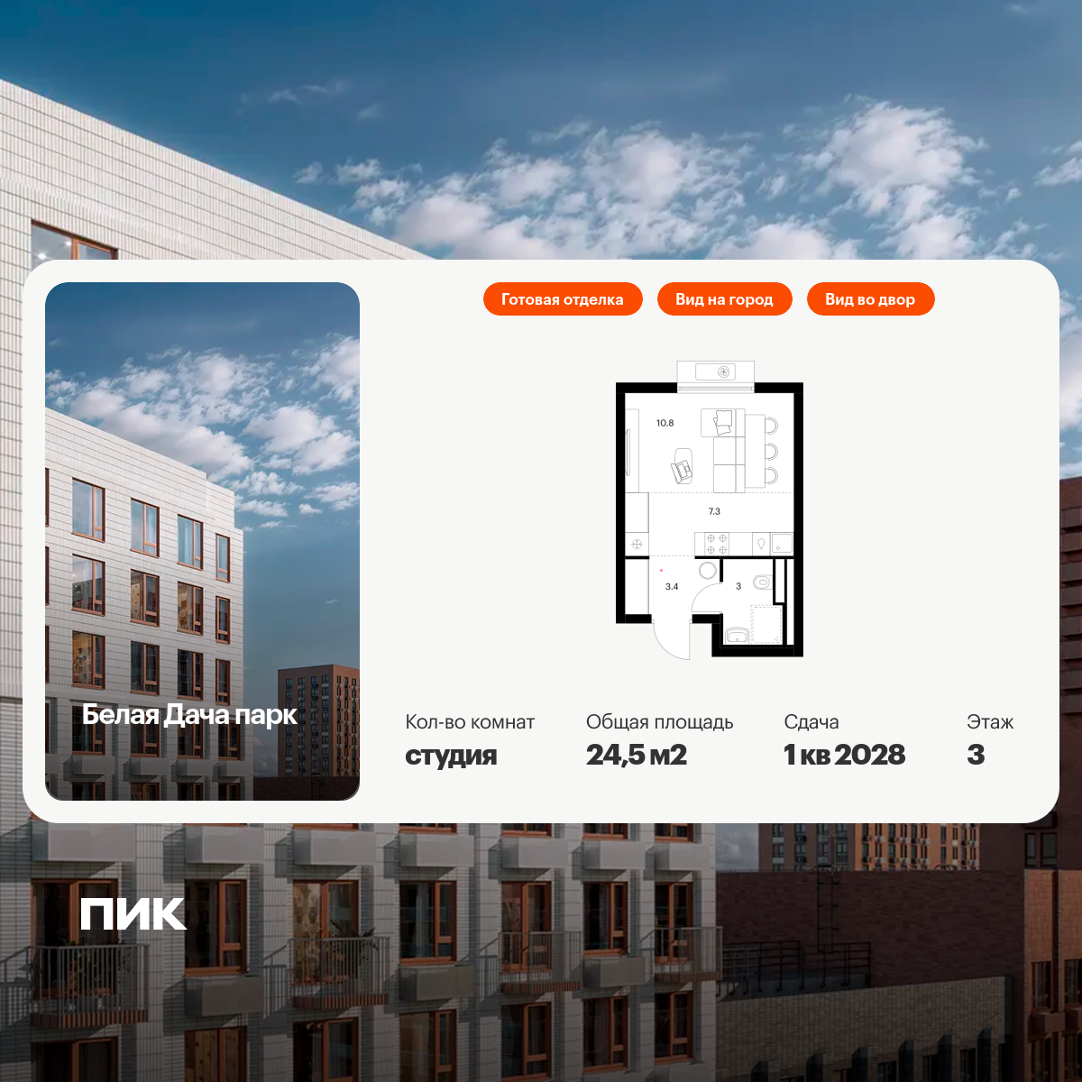 Квартиры-студии в Белая Дача Парк