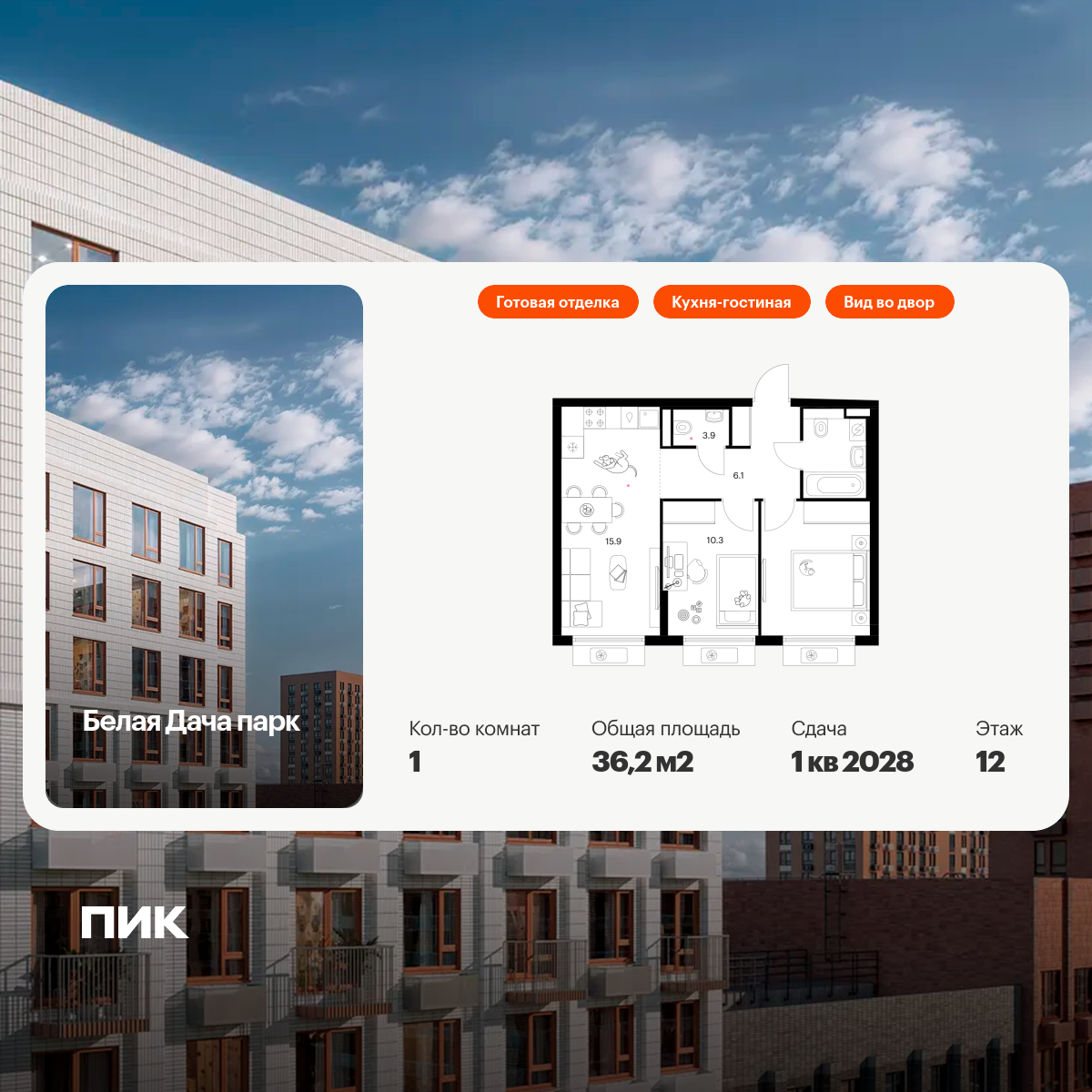 Однокомнатные квартиры в Белая Дача Парк - страница 2