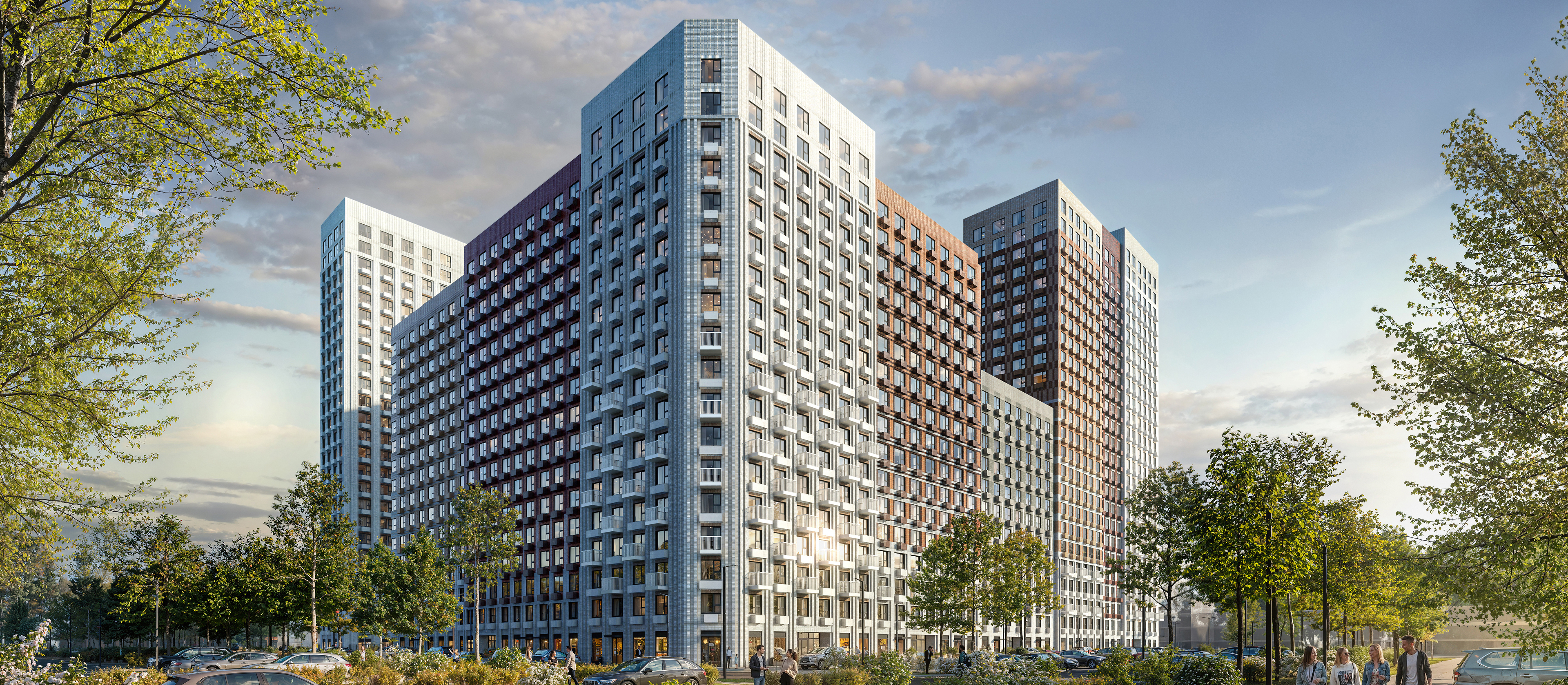 В квартале есть всё необходимое для комфортной жизни: две школы, поликлиника и пять детских садов. По центру квартала проходит широкий пешеходный бульвар для отдыха и прогулок.