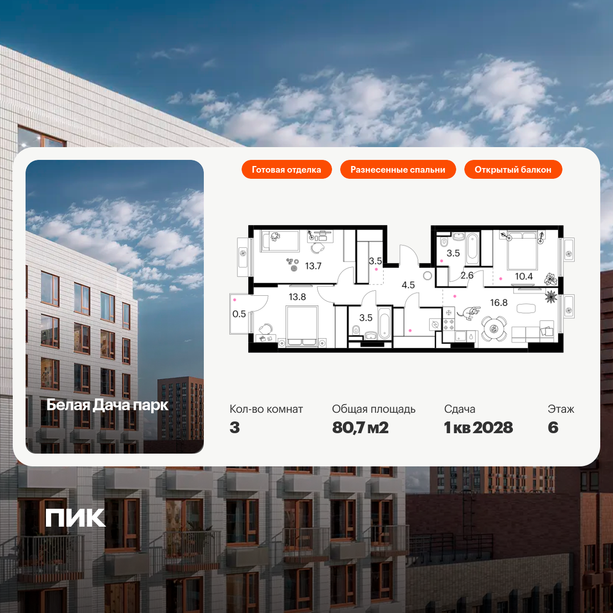 Трехкомнатные квартиры в Белая Дача Парк