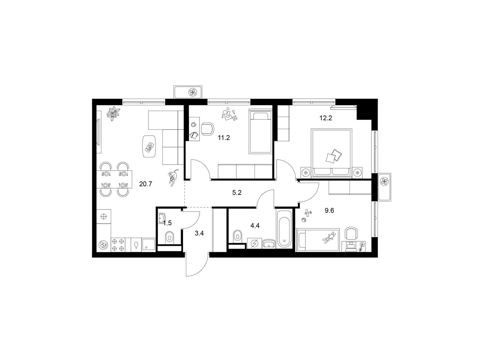В проекте «Белая Дача парк» широкий выбор планировок для разных сценариев жизни. Есть квартиры с мастер-спальней, кухней-гостиной, гардеробной, постирочной и двумя санузлами. Большим семьям понравятся планировки, где спальни разнесены по разные стороны гостиной.