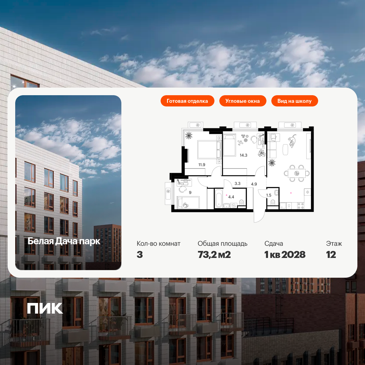 Трехкомнатные квартиры в Белая Дача Парк