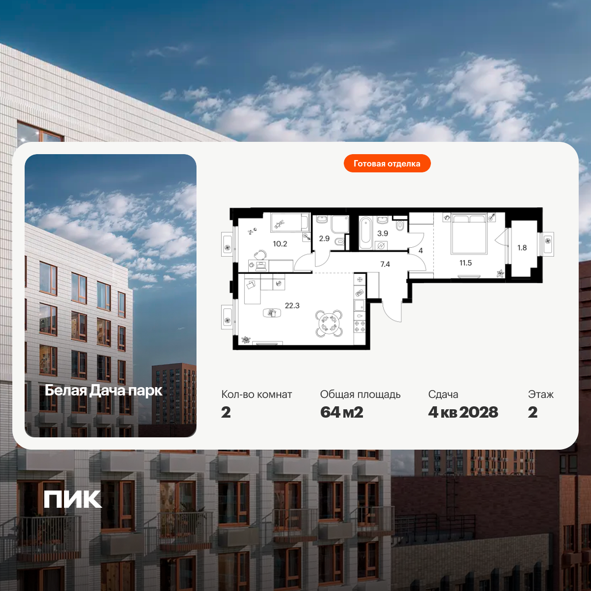 В проекте «Белая Дача парк» широкий выбор планировок для разных сценариев жизни. Есть квартиры с мастер-спальней, кухней-гостиной, гардеробной, постирочной и двумя санузлами. Большим семьям понравятся планировки, где спальни разнесены по разные стороны гостиной.