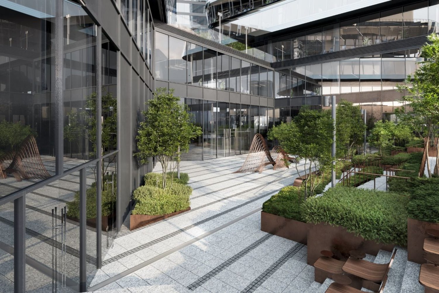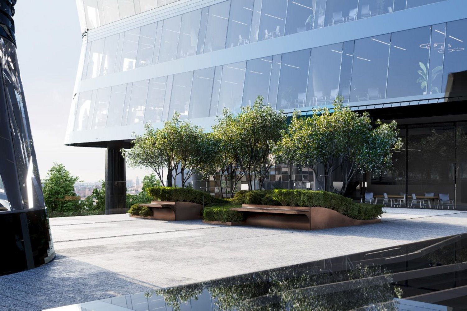 Опции, которые предлагает застройщик для проекта Бизнес-центр SET Office (СЕТ Офис): подземная парковка, центральная система кондиционирование, видеонаблюдение, консьерж-сервис, охрана, Face ID, фитнес-центр с бассейном, коммерческие помещения на первом этаже, закрытый сад с амфитеатром, вентиляция, система «умное здание».