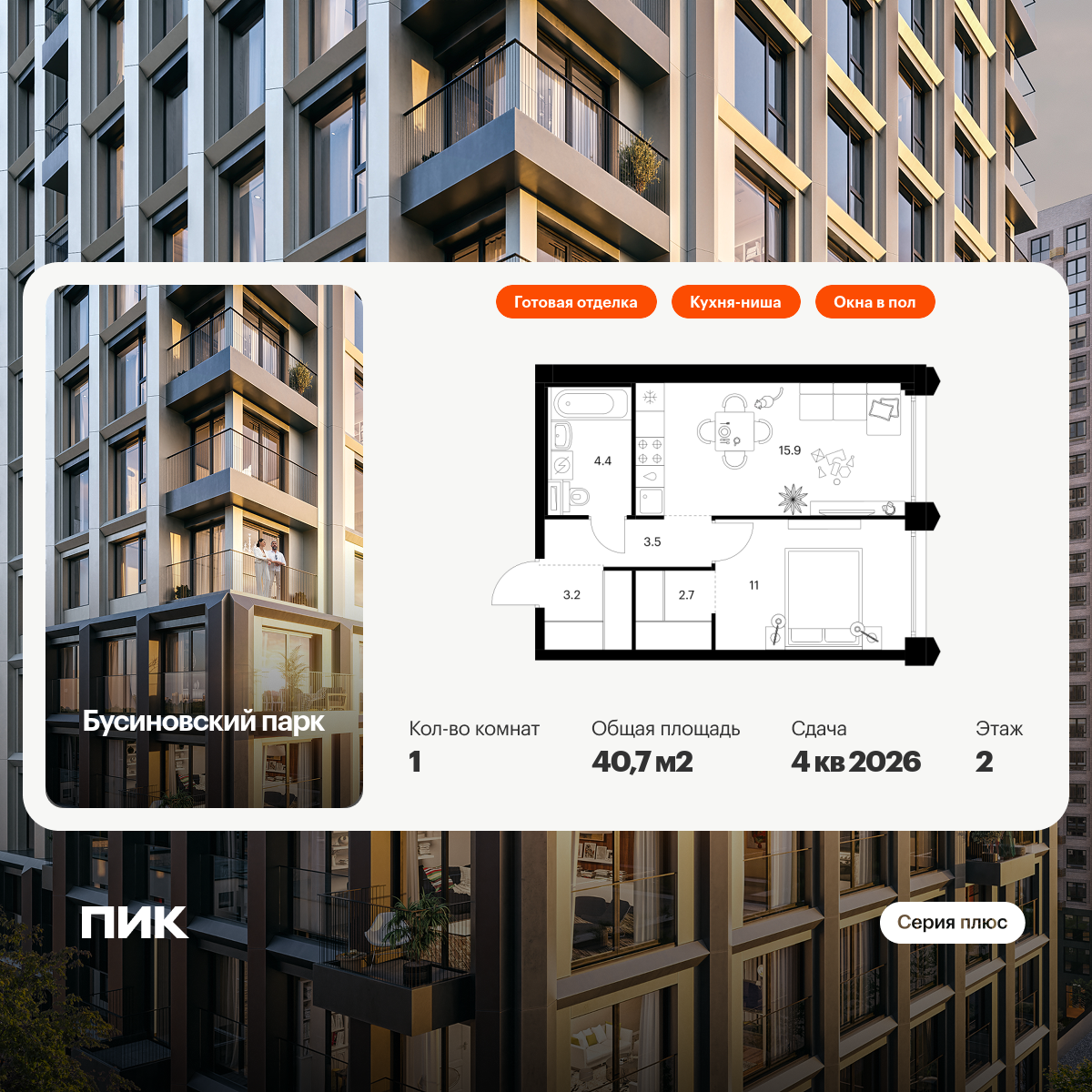 Проект принадлежит «Серии плюс». В «Серию плюс» входят жилые кварталы с повышенным уровнем комфорта и уникальной архитектурой. У квартир умные планировки: можно выбрать квартиру с мастер-спальней, где есть отдельная ванная комната, с просторной кухней-гостиной, с двумя санузлами, с гардеробной или постирочной. В светлых уютных лобби с дизайнерской отделкой предусмотрены колясочная и гостевой санузел.