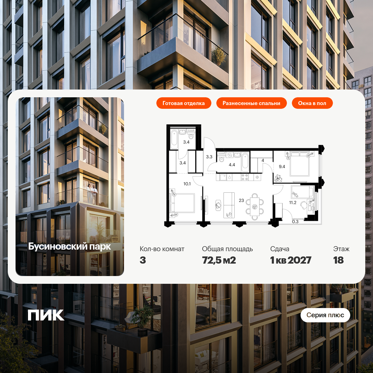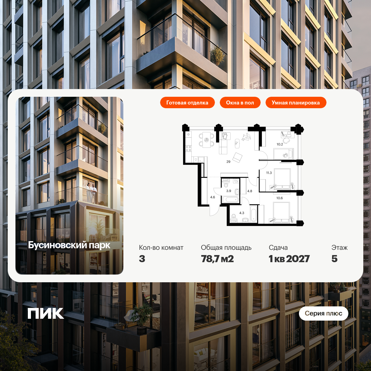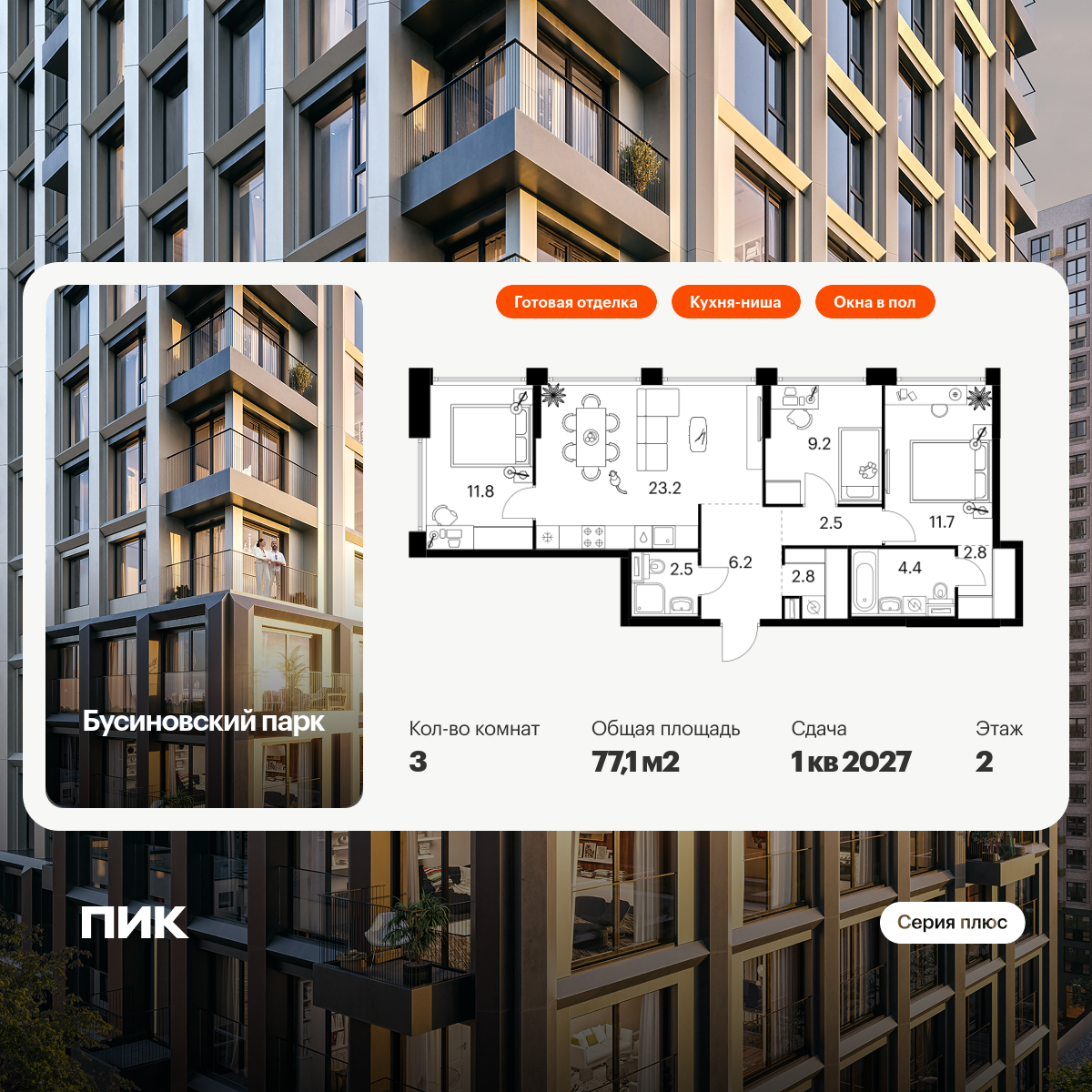 В проекте Бусиновский парк стартовали продажи в корпусах 2.3 и 2.4.