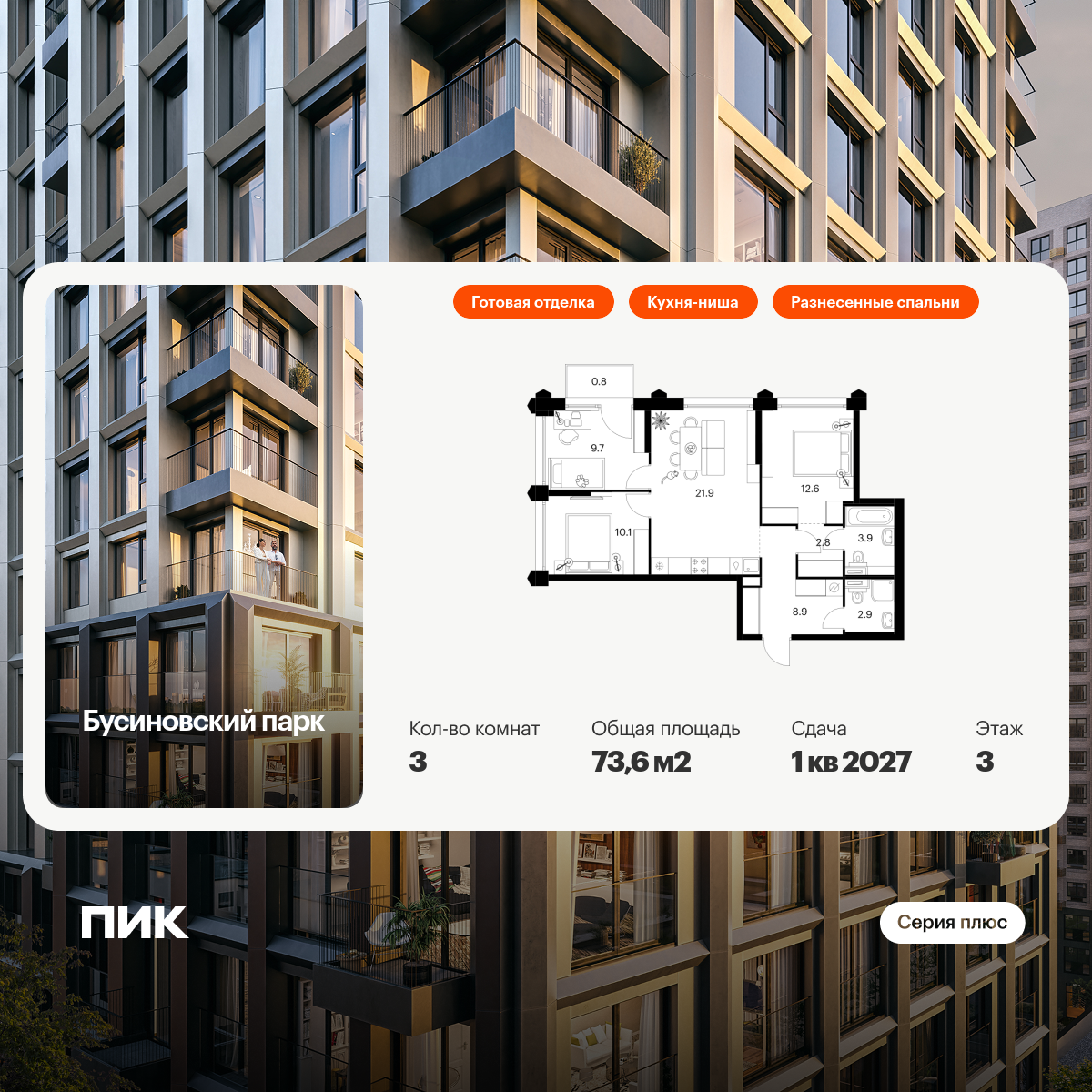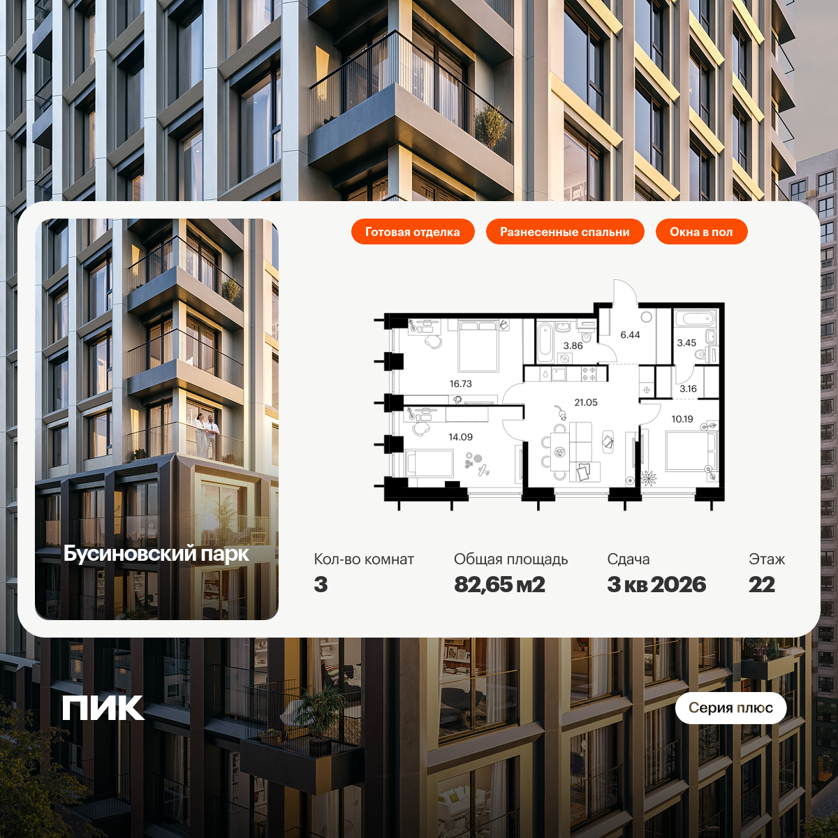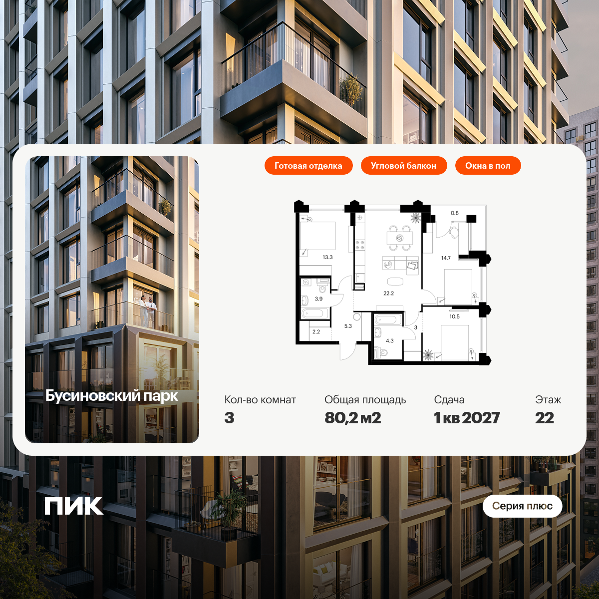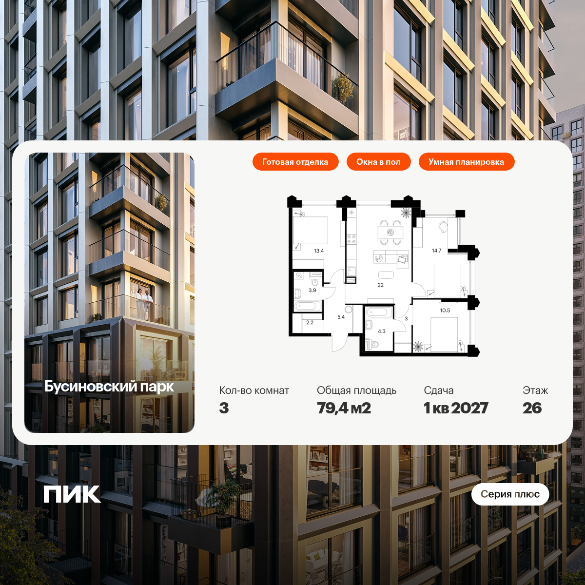 Проект принадлежит «Серии плюс». В «Серию плюс» входят жилые кварталы с повышенным уровнем комфорта и уникальной архитектурой. У квартир умные планировки: можно выбрать квартиру с мастер-спальней, где есть отдельная ванная комната, с просторной кухней-гостиной, с двумя санузлами, с гардеробной или постирочной. В светлых уютных лобби с дизайнерской отделкой предусмотрены колясочная и гостевой санузел.