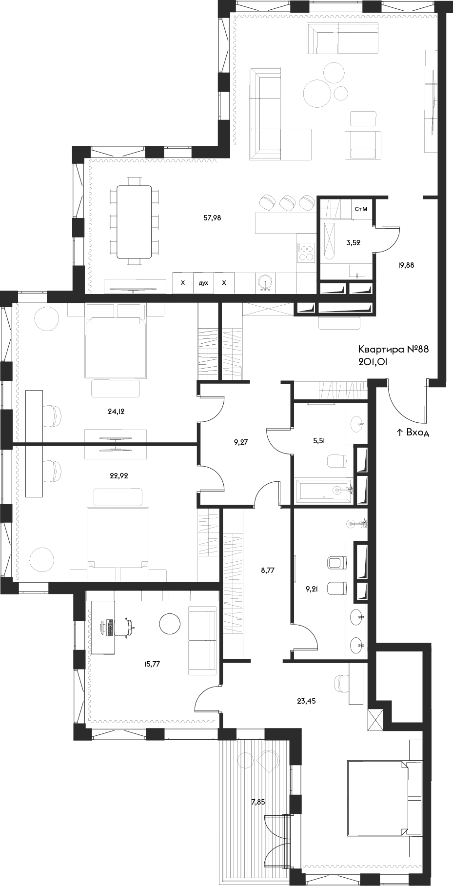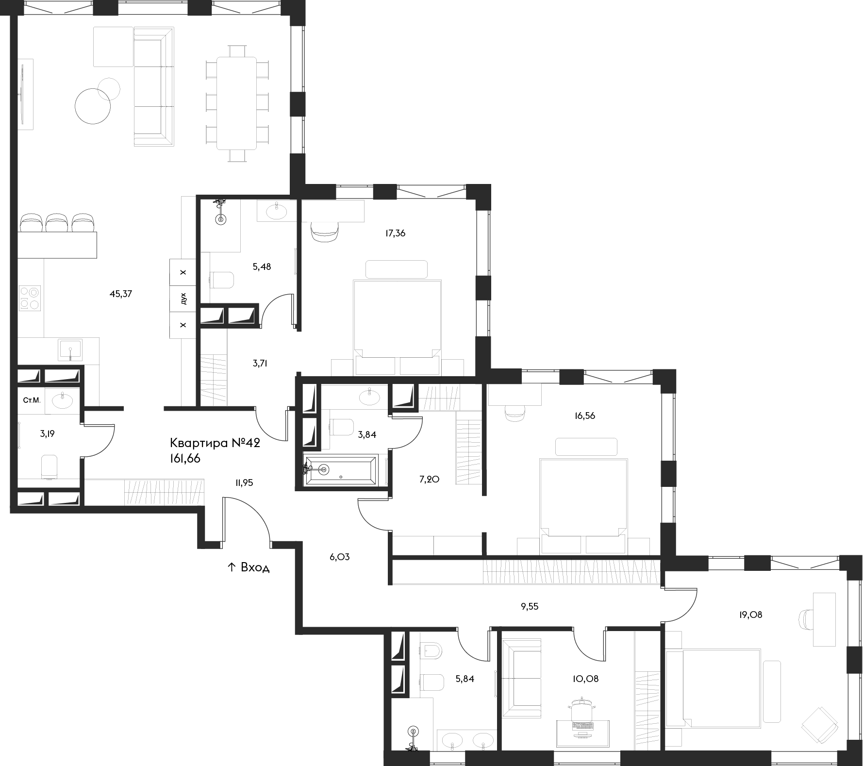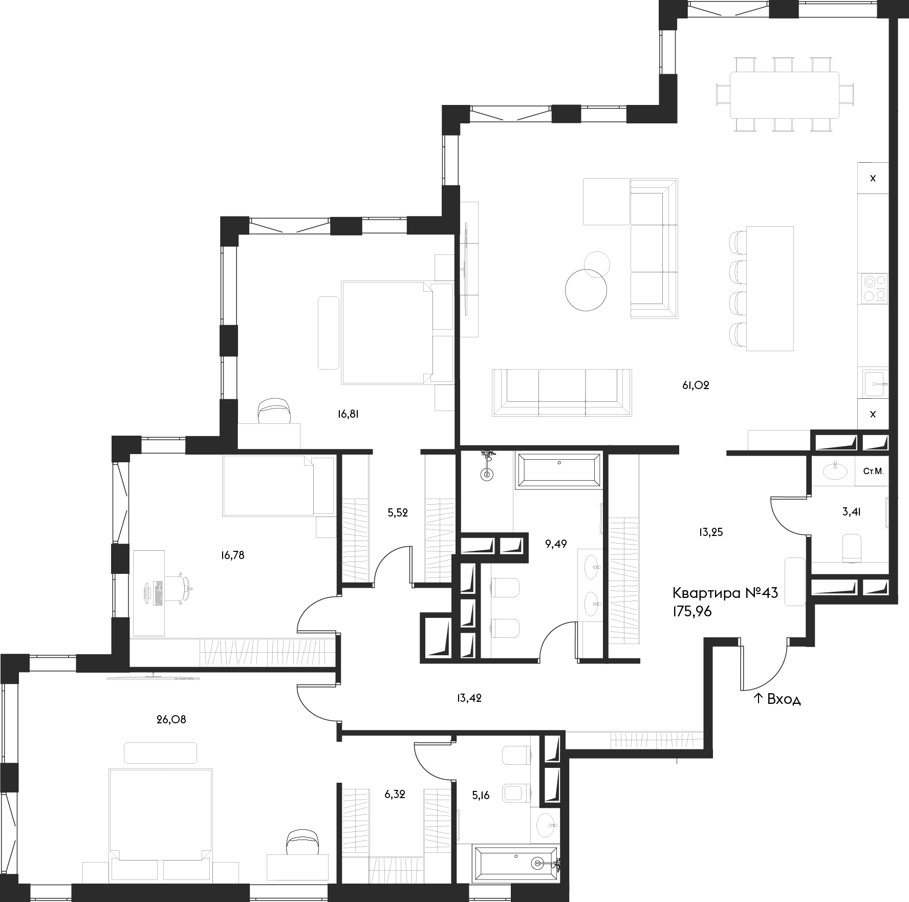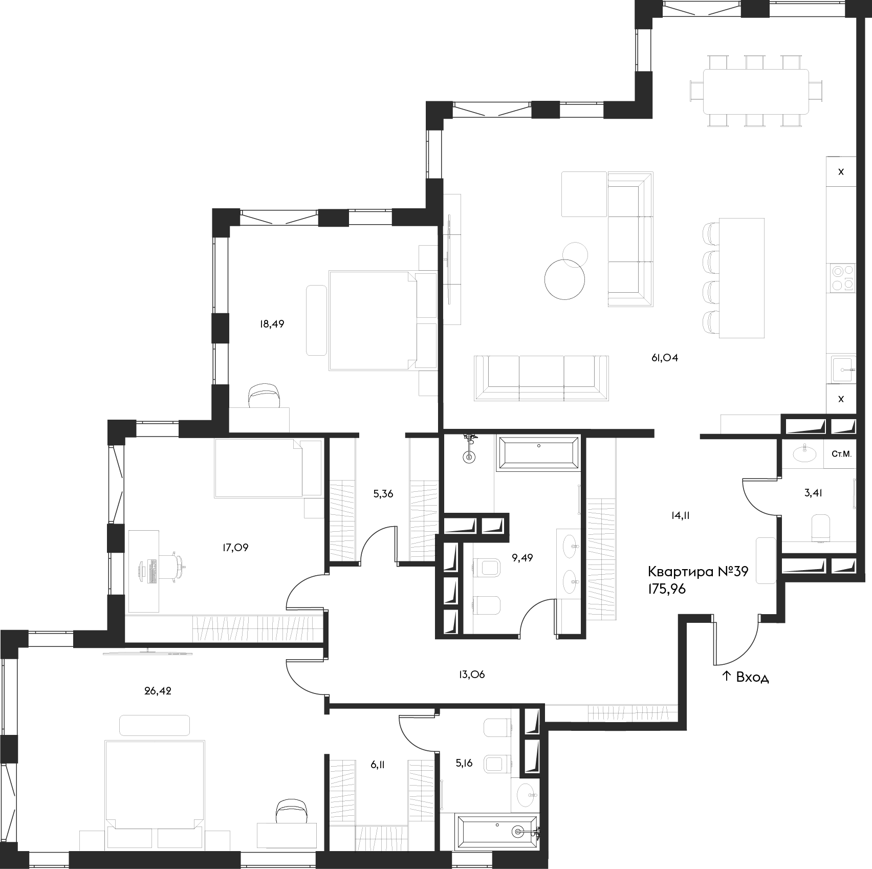 Четырехкомнатные квартиры в ЖК «Дизайнерский дом Eleven (11)»